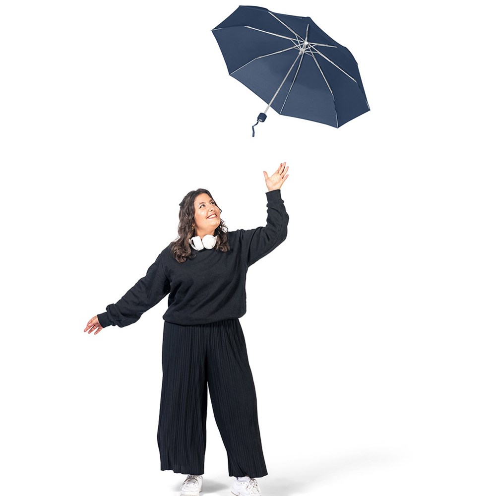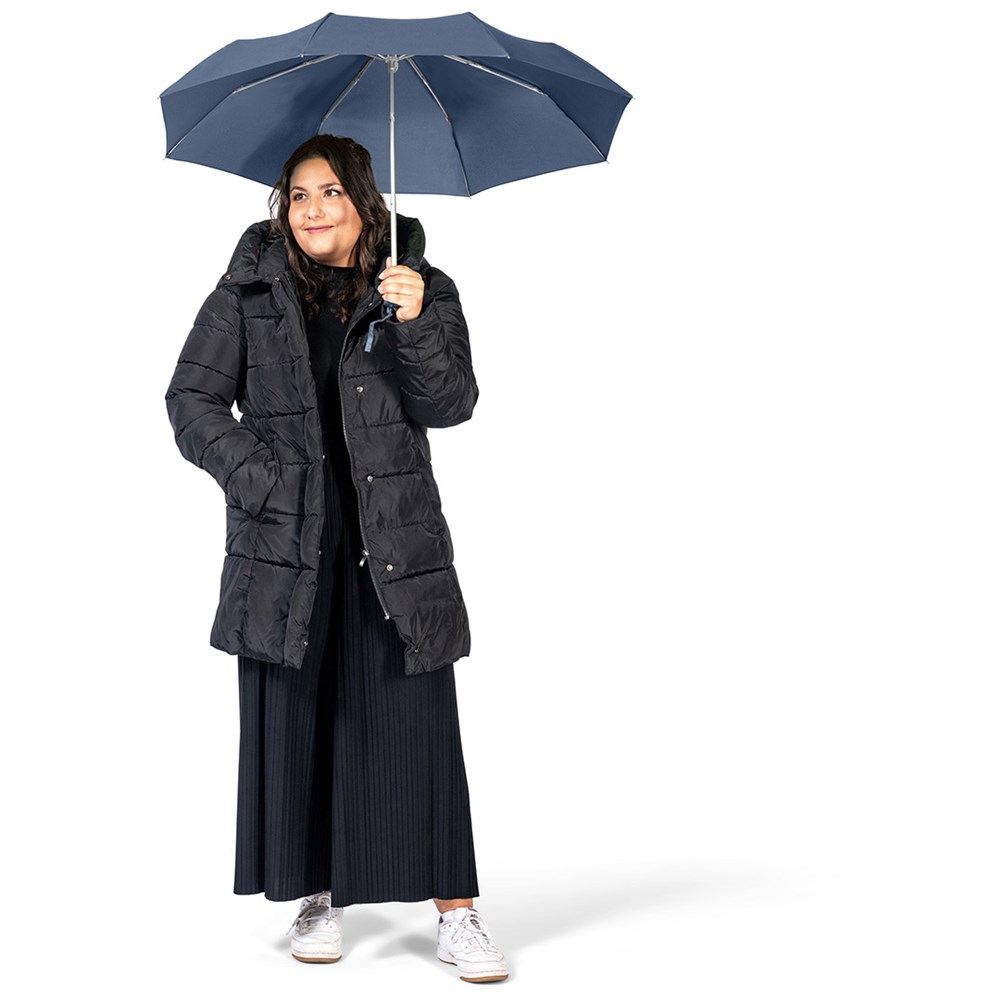 Ultraleichter Handöffner-Taschenschirm mit Aluminiumgestell Einfache Handhabung durch Sicherheitsschieber, Windproof-System für höhere Gestell-Flexibilität und bessere Windsicherheit, Soft-Touch-Griff mit Werbeanbringungsmöglichkeit, handtaschentauglich durch ultraleichtes Gewicht