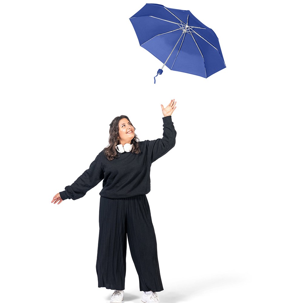 Ultraleichter Handöffner-Taschenschirm mit Aluminiumgestell Einfache Handhabung durch Sicherheitsschieber, Windproof-System für höhere Gestell-Flexibilität und bessere Windsicherheit, Soft-Touch-Griff mit Werbeanbringungsmöglichkeit, handtaschentauglich durch ultraleichtes Gewicht