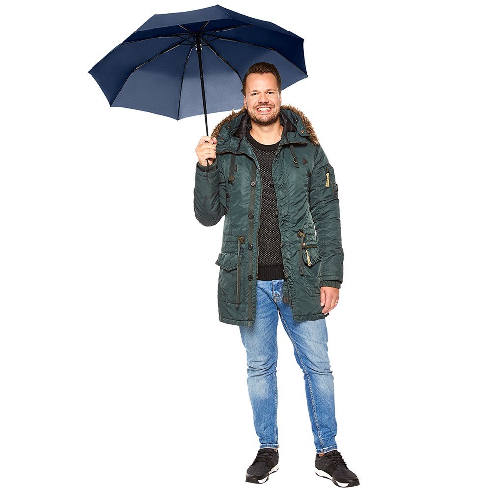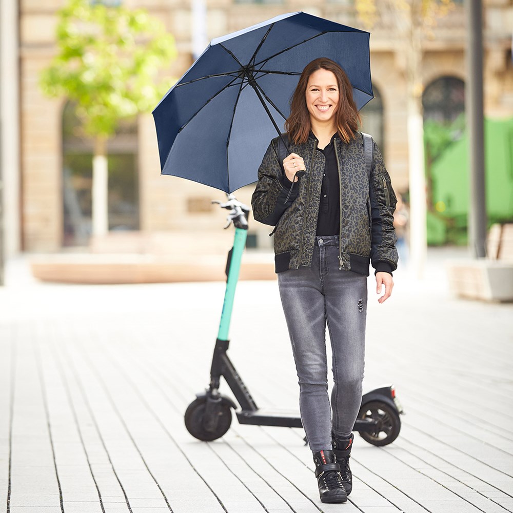 Preislich attraktiver Doppelautomatik-Taschenschirm mit Windproof-PLUS-System Komfortable Doppelautomatik-Funktion zum schnellen Öffnen und Schließen des Schirms, hochwertiges Windproof-PLUS-System für eine maximale Gestell-Flexibilität bei stärkeren Windböen, handsympathischer Soft-Feel-Griff mit integrierter Auslösetaste, elastischer Tragekordel und Werbeanbringungsmöglichkeit