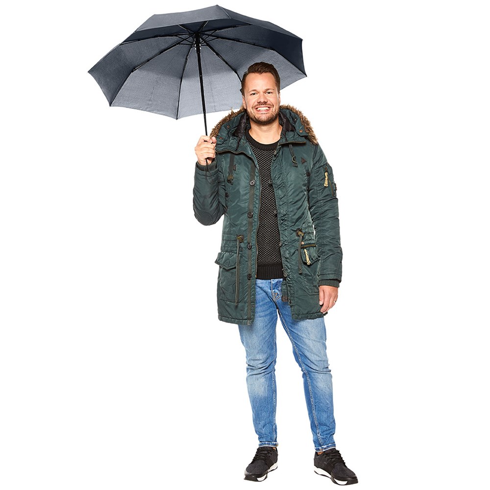 Preislich attraktiver Doppelautomatik-Taschenschirm mit Windproof-PLUS-System Komfortable Doppelautomatik-Funktion zum schnellen Öffnen und Schließen des Schirms, hochwertiges Windproof-PLUS-System für eine maximale Gestell-Flexibilität bei stärkeren Windböen, handsympathischer Soft-Feel-Griff mit integrierter Auslösetaste, elastischer Tragekordel und Werbeanbringungsmöglichkeit