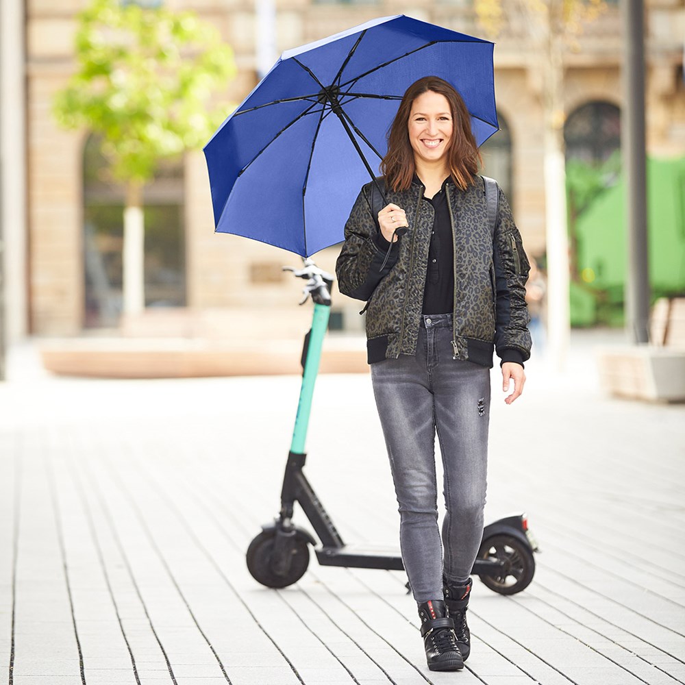 Preislich attraktiver Doppelautomatik-Taschenschirm mit Windproof-PLUS-System Komfortable Doppelautomatik-Funktion zum schnellen Öffnen und Schließen des Schirms, hochwertiges Windproof-PLUS-System für eine maximale Gestell-Flexibilität bei stärkeren Windböen, handsympathischer Soft-Feel-Griff mit integrierter Auslösetaste, elastischer Tragekordel und Werbeanbringungsmöglichkeit