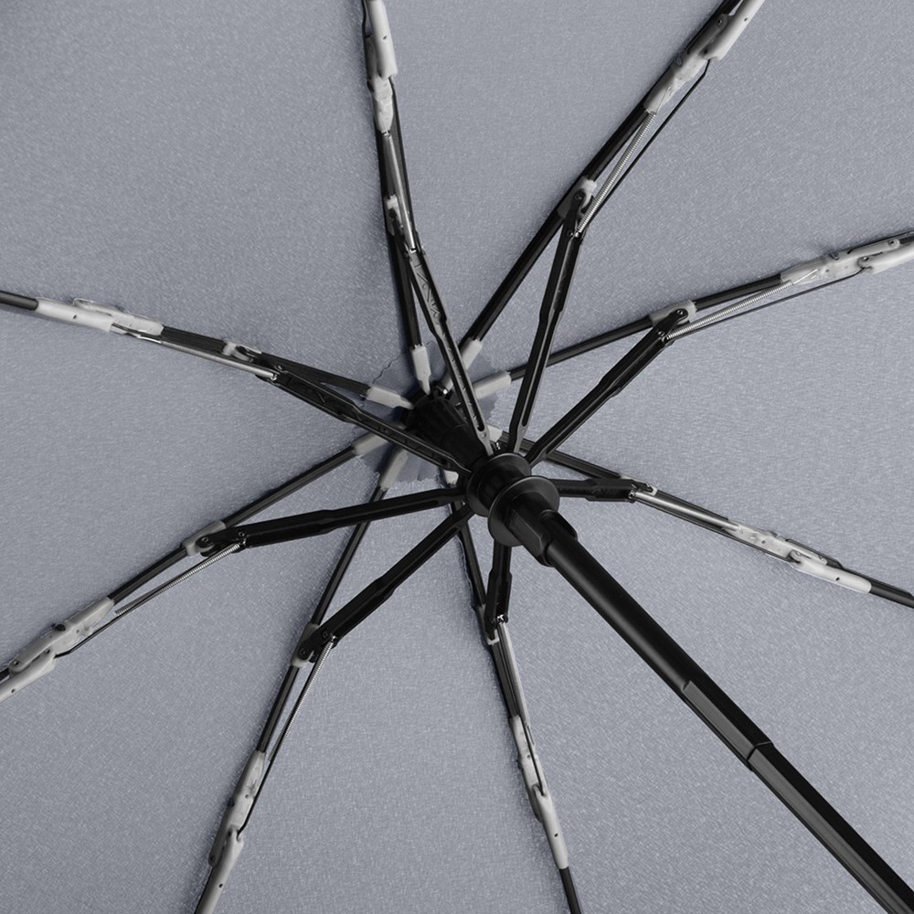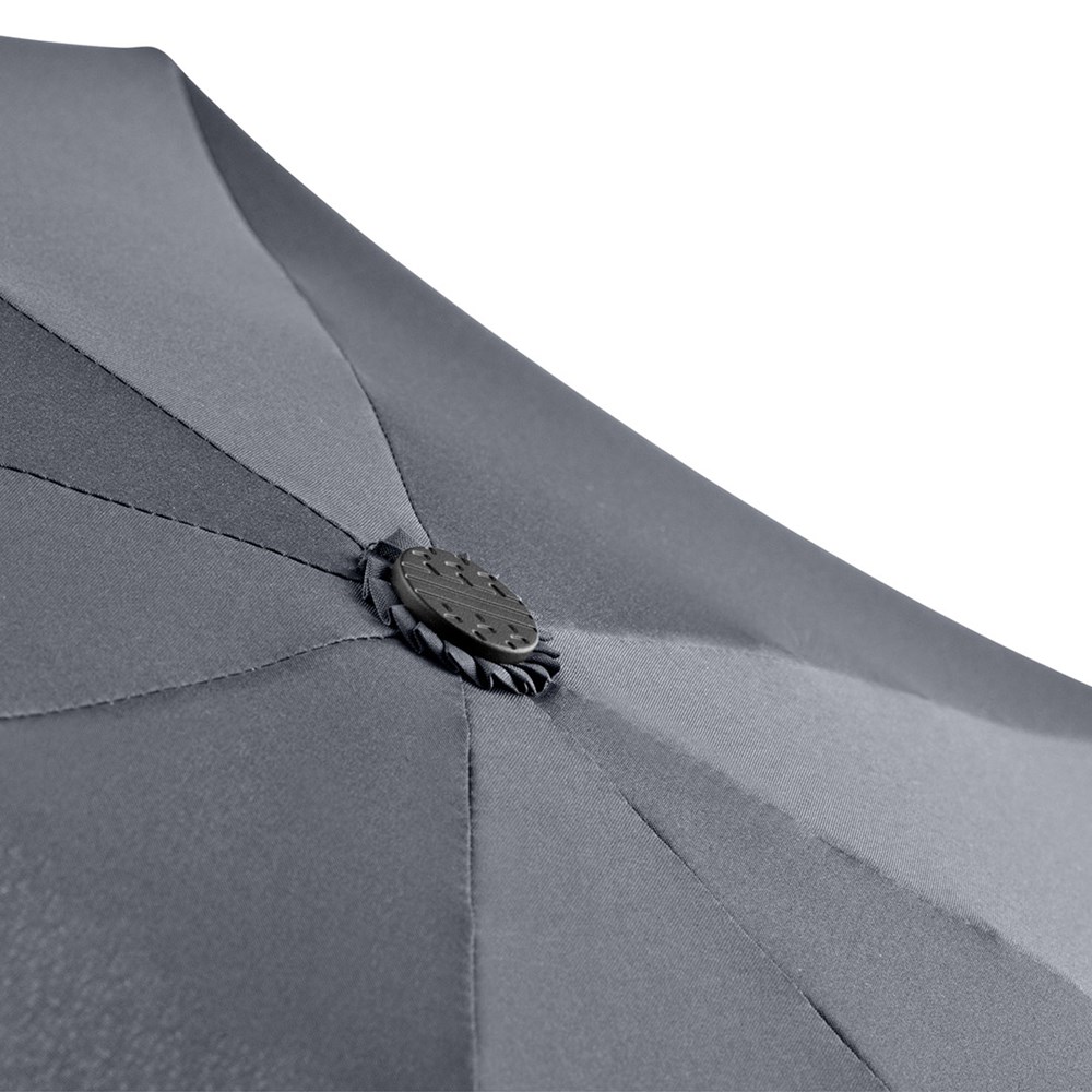 Exklusiver Doppelautomatik-Taschenschirm mit Reifenprofil-Design-Elementen Komfortable Automatik-Funktion zum schnellen Öffnen und Schließen, hochwertiges Windproof-PLUS-System für eine maximale Gestell-Flexibilität bei stärkeren Windböen, stabile Fiberglasschienen mit grauen Gelenken, handsympathischer Soft-Feel-Griff mit integrierter Auslösetaste und Werbeanbringungsmöglichkeit, komfortables Futteral mit Druckknopf. Auch als Golf-/Gästeschirm (Art. 7355) erhältlich.