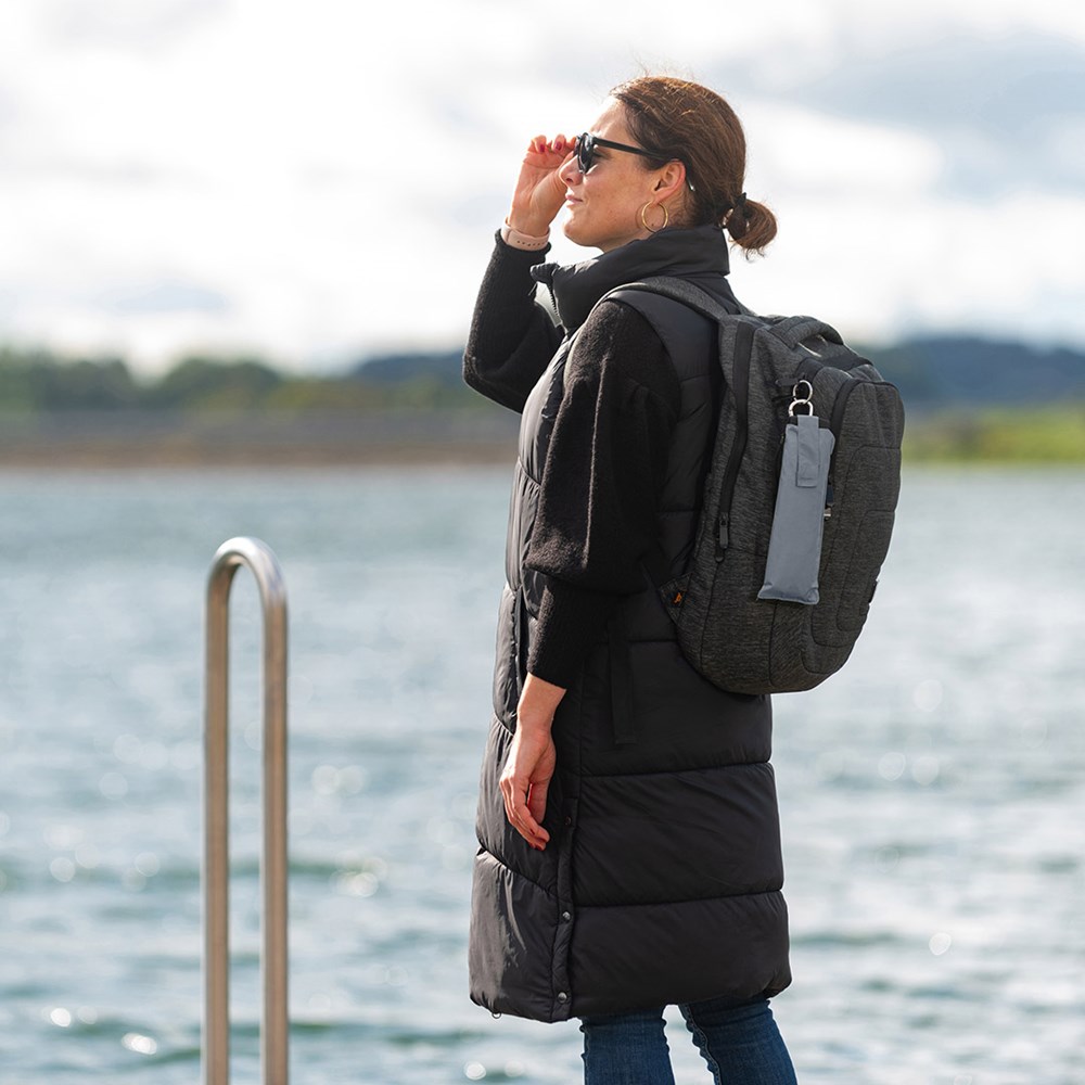 Ultraleichter Handöffner-Taschenschirm im praktischen Tragefutteral mit Karabinerhaken Hochwertiges Windproof-PLUS-System für eine maximale Gestell-Flexibilität bei stärkeren Windböen, verchromter Stahlstock, extra leichter Bezug, flacher Soft-Touch-Griff mit Werbeanbringungsmöglichkeit, Tragefutteral mit praktischem Karabinerhaken zur Befestigung an Rucksack oder Tasche, handtaschentauglich durch extrem leichtes Gewicht, platzsparend durch superflache Ausführung