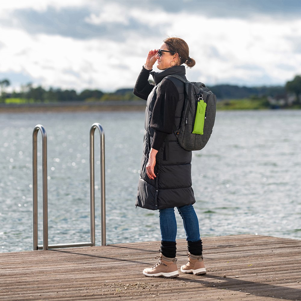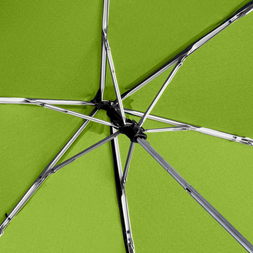 Ultraleichter Handöffner-Taschenschirm im praktischen Tragefutteral mit Karabinerhaken Hochwertiges Windproof-PLUS-System für eine maximale Gestell-Flexibilität bei stärkeren Windböen, verchromter Stahlstock, extra leichter Bezug, flacher Soft-Touch-Griff mit Werbeanbringungsmöglichkeit, Tragefutteral mit praktischem Karabinerhaken zur Befestigung an Rucksack oder Tasche, handtaschentauglich durch extrem leichtes Gewicht, platzsparend durch superflache Ausführung
