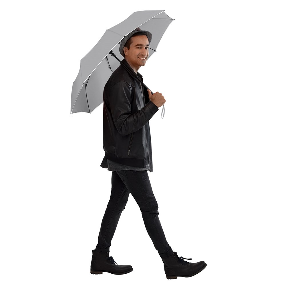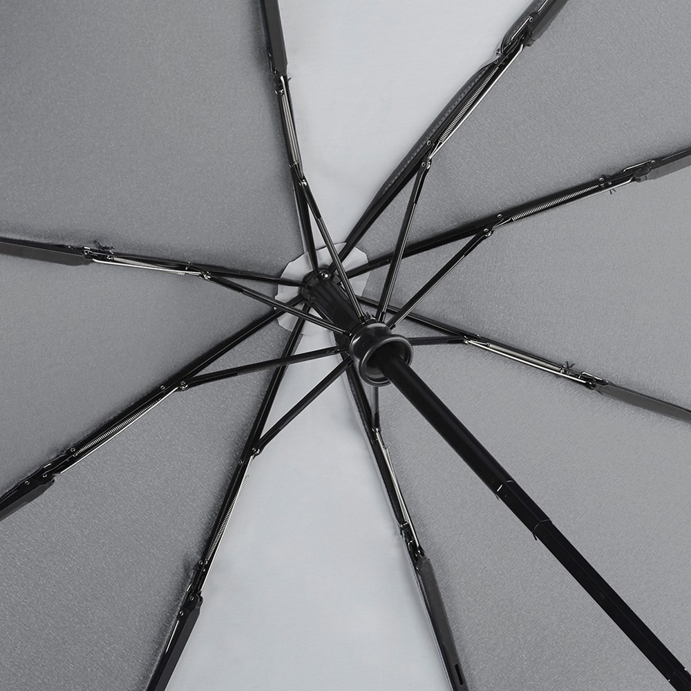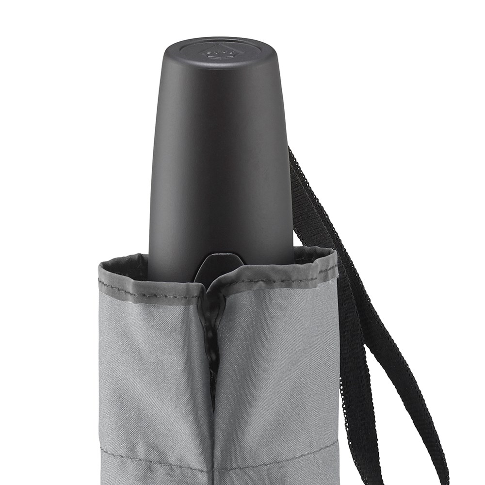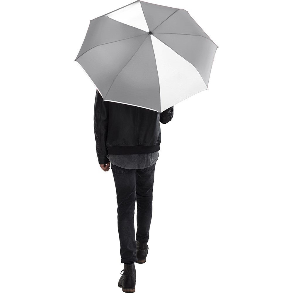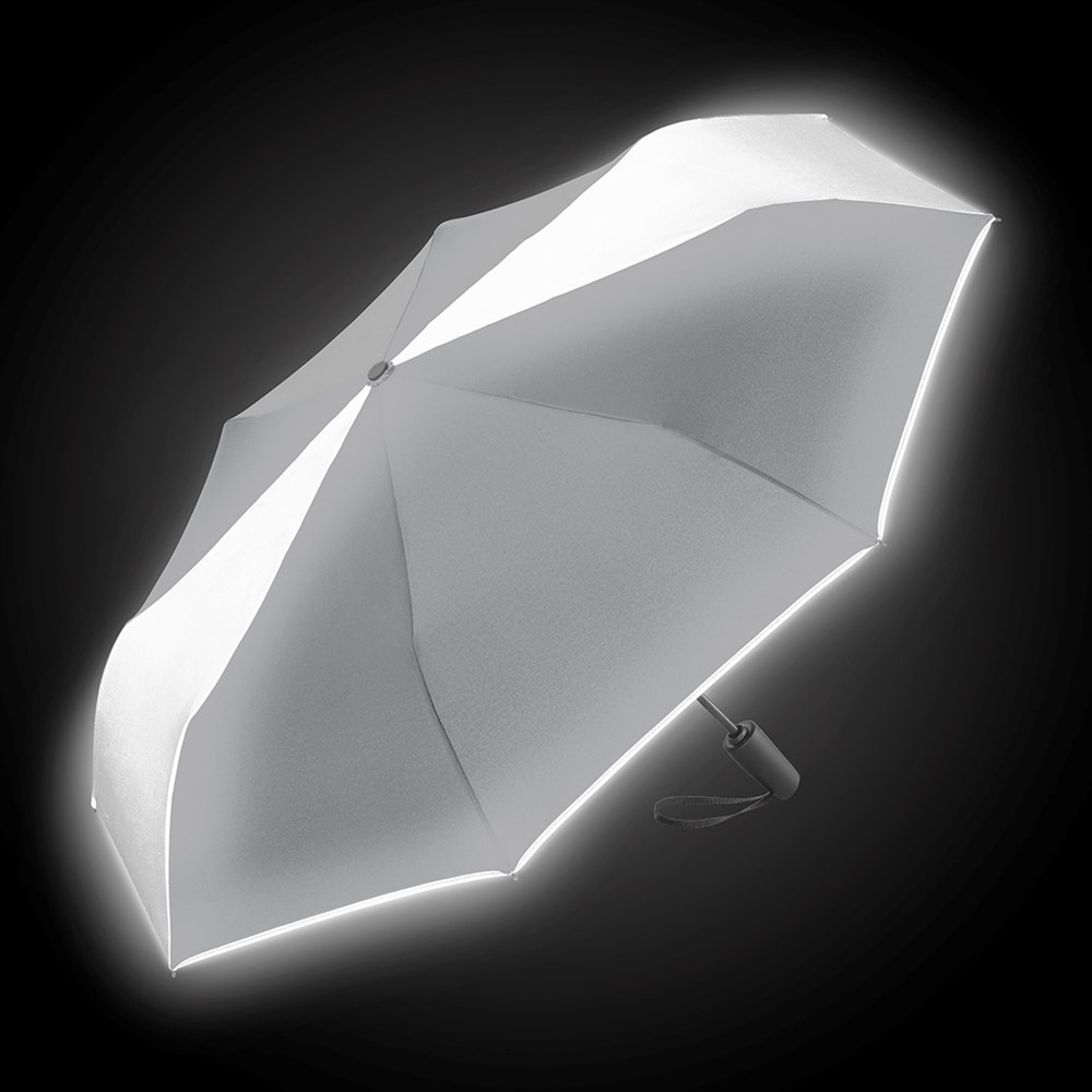 Trendiger Doppelautomatik-Taschenschirm mit modisch reflektierender Außenbeschichtung auf zwei Segmenten Komfortable Doppelautomatik-Funktion zum schnellen Öffnen und Schließen, hochwertiges Windproof-PLUS-System für eine maximale Gestell-Flexibilität bei stärkeren Windböen, zwei Segmente und modische Paspelierung mit farblich zum Bezug passender und modisch reflektierender Beschichtung, Soft-Feel-Griff mit integrierter Auslösetaste und Werbeanbringungsmöglichkeit, Futteral mit modischer Reflexpaspel. Auch als Gästeschirm (Art. 7377) erhältlich.
