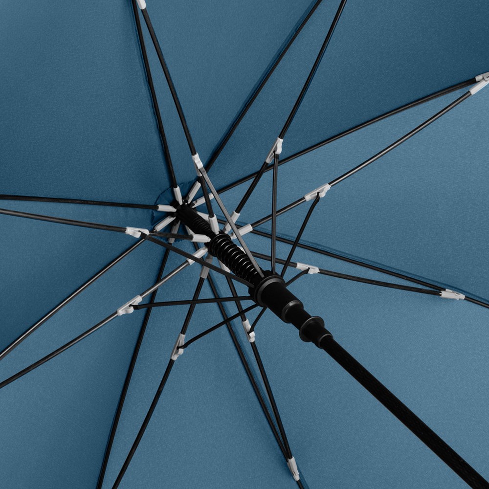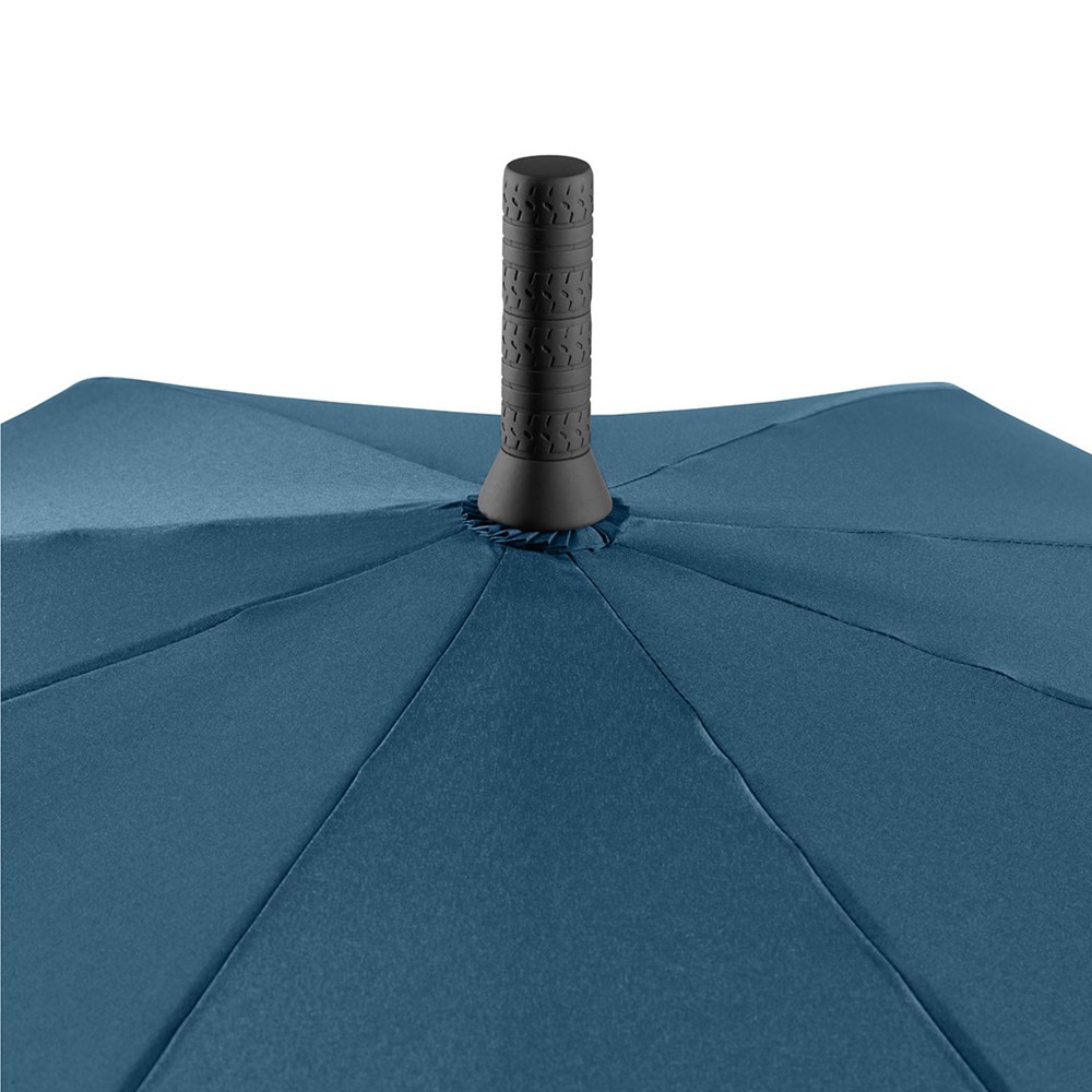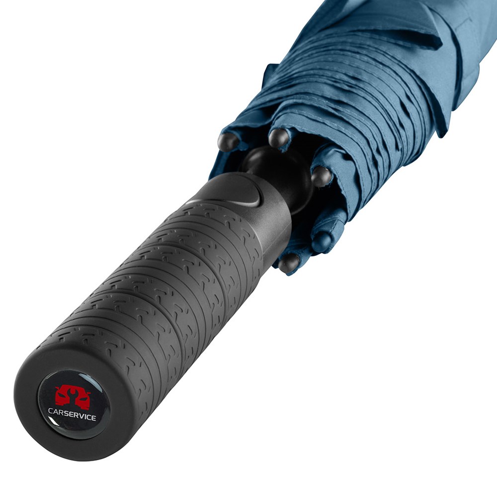 Exklusiver Automatik-Golf-/Gästeschirm für zwei Personen mit Reifenprofil-Design-Elementen Komfortable Automatik-Funktion zum schnellen Öffnen, hochwertiges Windproof-PLUS-System für eine maximale Gestell-Flexibilität bei stärkeren Windböen, flexible Fiberglasschienen mit grauen Gelenken, handsympathischer Soft-Feel-Griff im Reifenprofil-Design mit integrierter Auslösetaste und Werbeanbringungsmöglichkeit. Auch als Taschenschirm (Art. 5455) erhältlich.
