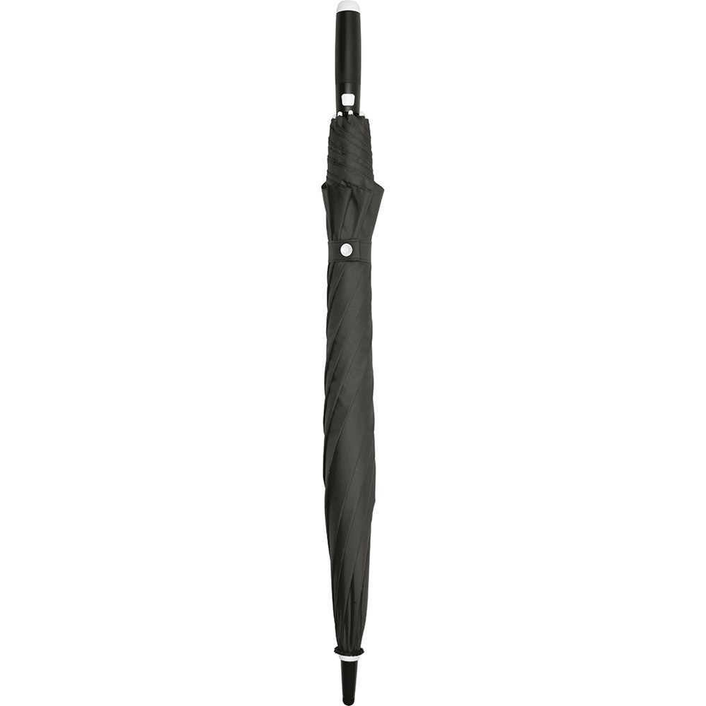 Stylischer Automatik-Stockschirm in mittlerer Größe mit weißem Stock, Schienen und Kunststoff-Spitzen Komfortable Automatik-Funktion zum schnellen Öffnen, hochwertiges Windproof-PLUS-System für eine maximale Gestell-Flexibilität bei stärkeren Windböen, flexible Fiberglasschienen in weiß, stabiler Stahlstock mit weißer Kunststoffummantelung, Polyester-Pongee Bezugsmaterial aus recycelten Kunststoffen, weiße Kunststoff-Spitzen, formschöner Soft-Feel-Griff mit integrierter Auslösetaste und Werbeanbringungsmöglichkeit