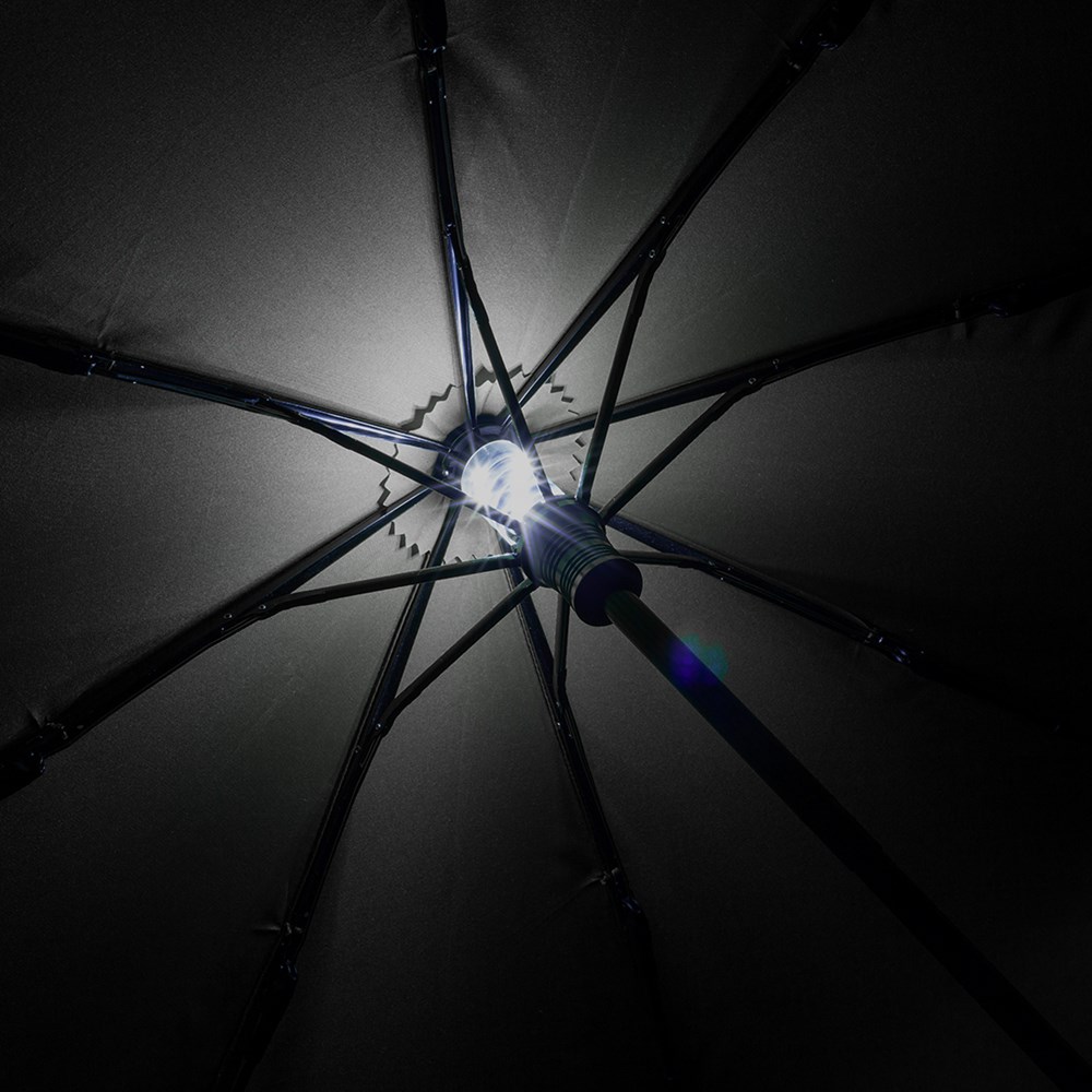 Effektvoller Taschenschirm mit LED-Innenbeleuchtung und Aufhängefunktion Einfache Handhabung durch Sicherheitsschieber, hochwertiges Windproof-PLUS-System für eine maximale Gestell-Flexibilität bei stärkeren Windböen, Soft-Feel-Griff mit abnehmbarer Trageschlaufe in Bezugsfarbe und mit Werbeanbringungsmöglichkeit, Top mit Aufhängefunktion für Trageschlaufe zu Dekorationszwecken, einfaches An- und Ausschalten des Lichts am Sicherheitsschieber, WEEE-Reg.-Nr. DE 14360689, Batt-Reg.-Nr. DE 52803080, Batterien (1 x AAA) im Lieferumfang enthalten.