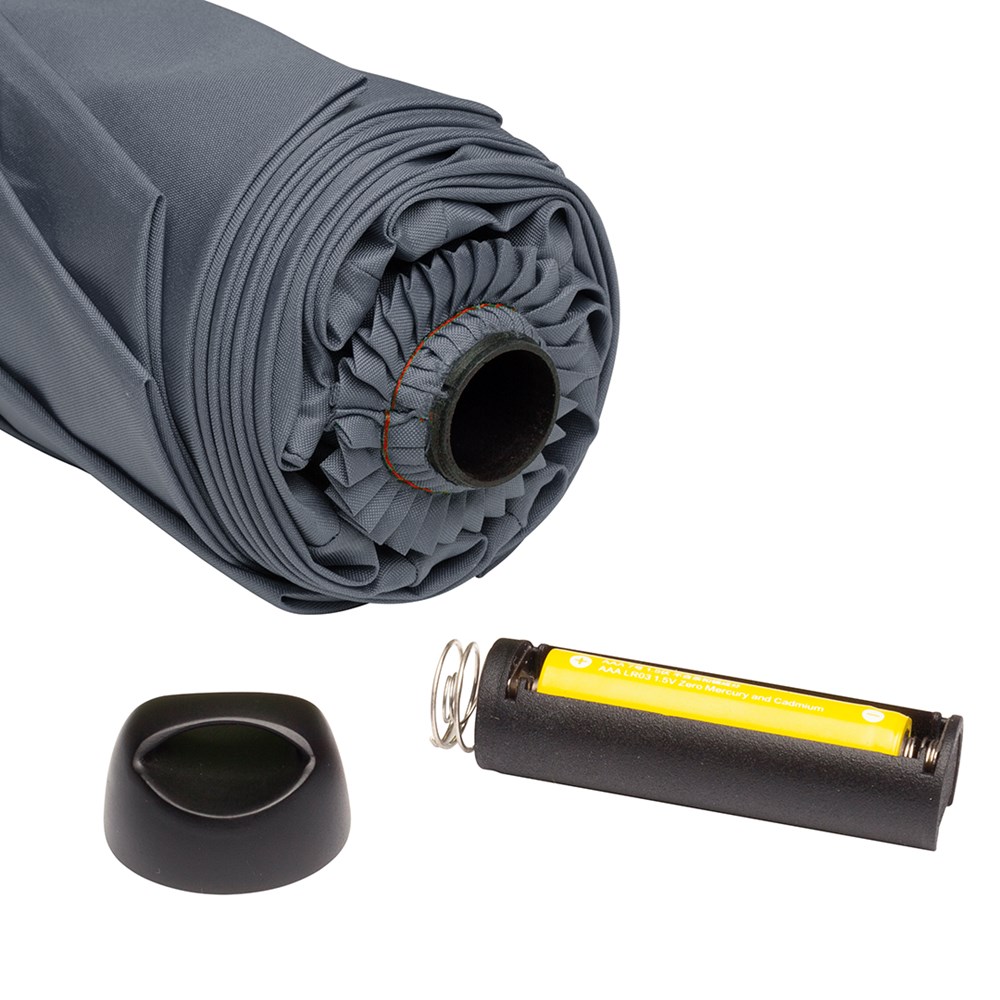 Material: Bezug: 100% Polyester-Pongee Griff: Kunststoff Stock: Stahl Batterietyp: Primärbatterie Chemisches System: Zink-Mangandioxid (Zn/MnO2)