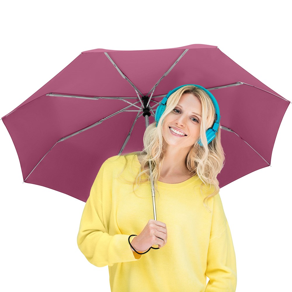 Trendiger Doppelautomatik-Taschenschirm in durchgehend einheitlicher Farbgebung Komfortable Doppelautomatik-Funktion zum schnellen Öffnen und Schließen, hochwertiges Windproof-PLUS-System für eine maximale Gestell-Flexibilität bei stärkeren Windböen, einige Farben auch mit waterSAVE® Bezugsmaterial erhältlich - diese dann mit waterSAVE® Label auf dem Schließband, verchromter Stahlstock, Soft-Touch-Griff in Bezugsfarbe mit silberner Auslösetaste, elastischer Tragekordel und Werbeanbringungsmöglichkeit, Futteral mit schwarzer Paspelierung. Auch als weiterer Taschenschirm (Art. 5565), als Stockschirm (Art. 7560) und als Gästeschirm (Art. 7580) erhältlich.
