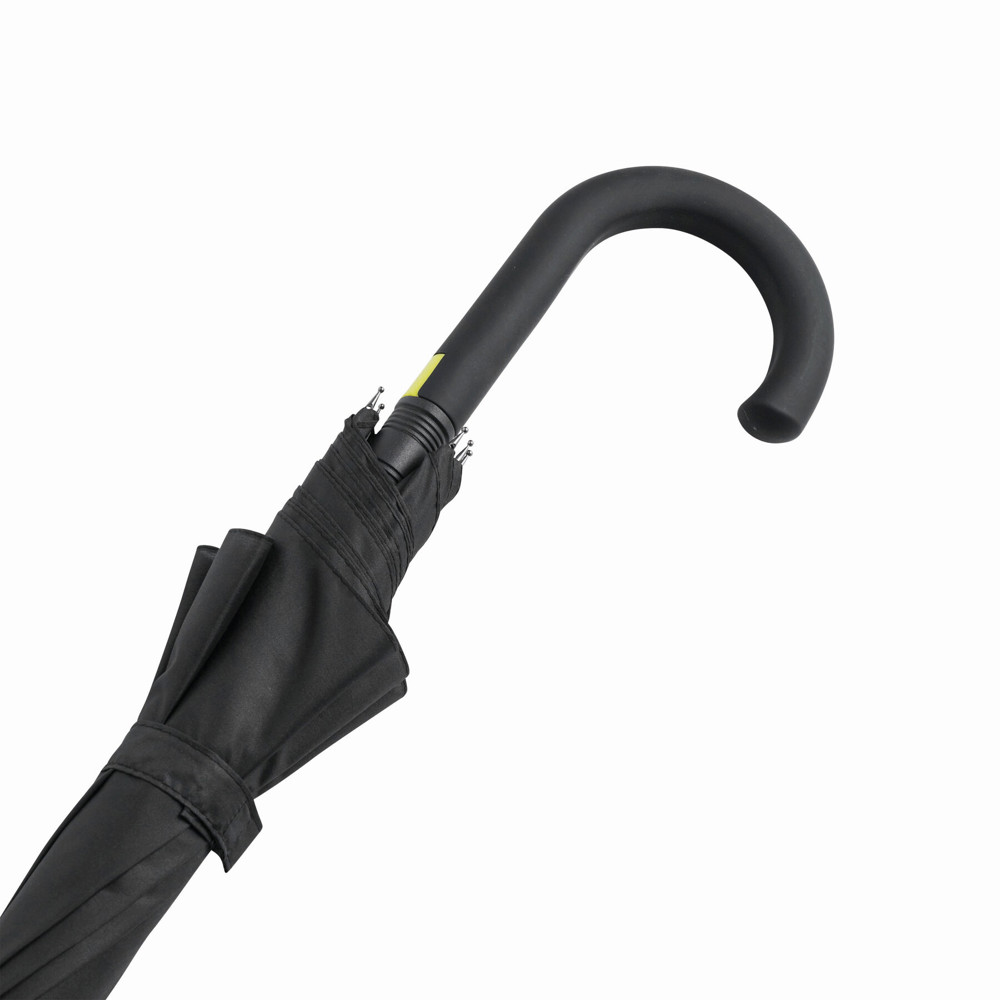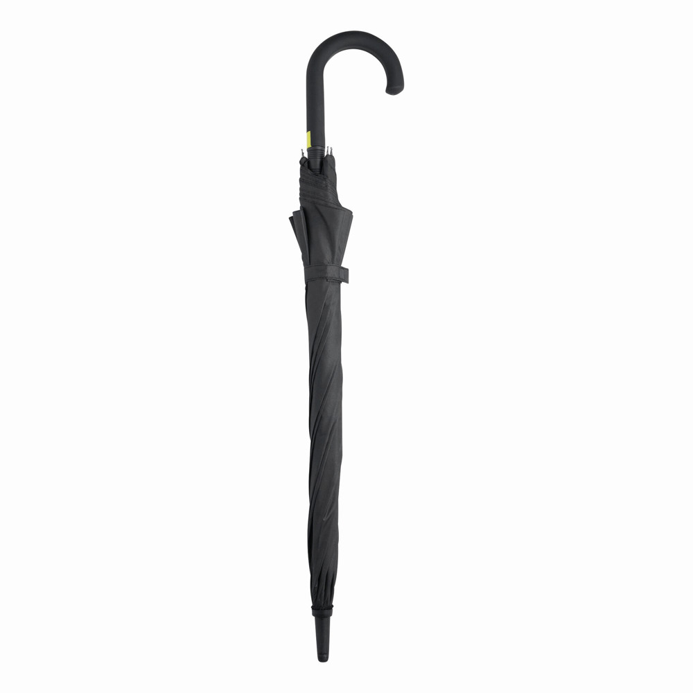Automatik-Stockschirm CANCAN: Metallstock und Fiberglasspeichen farblich abgestimmt, mit Metalltips, gummierter Rundhakengriff mit farblich abgestimmter Automatik-Auslösetaste, Polyester-Pongee-Bespannung, Schließband mit Klettverschluss