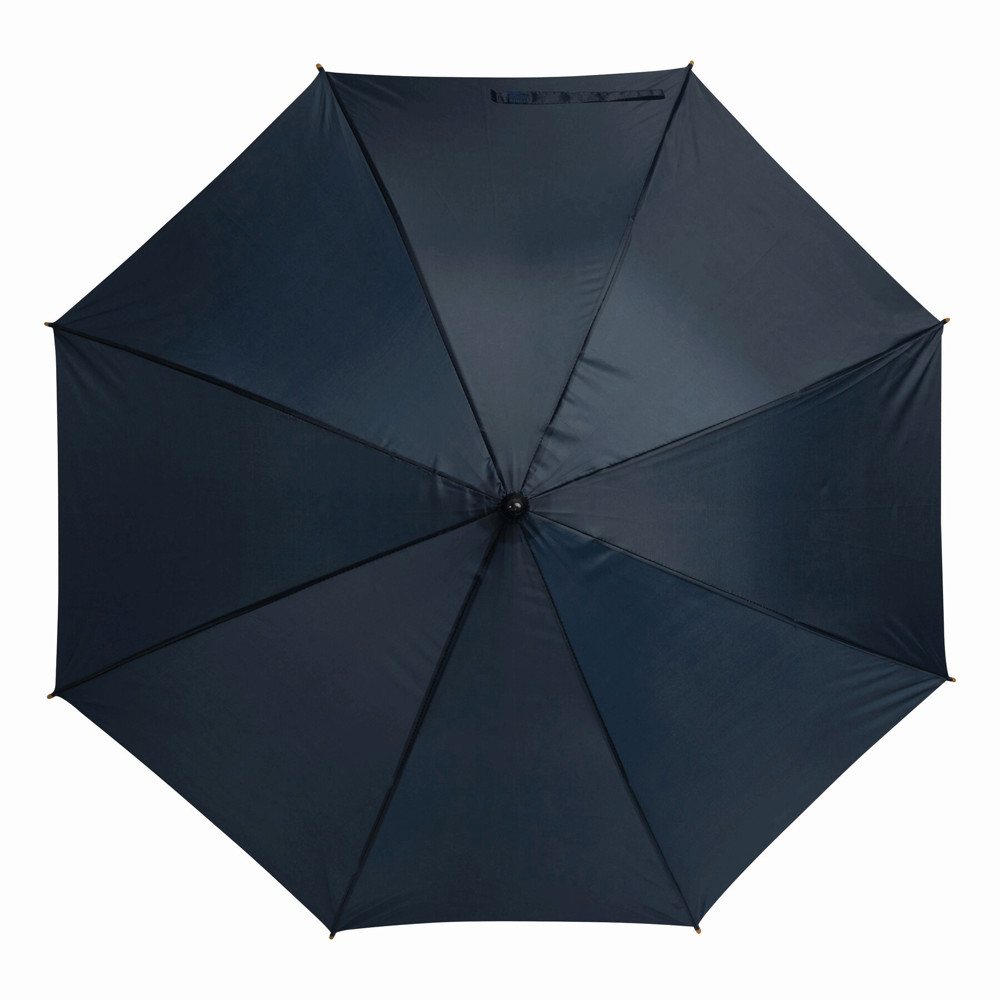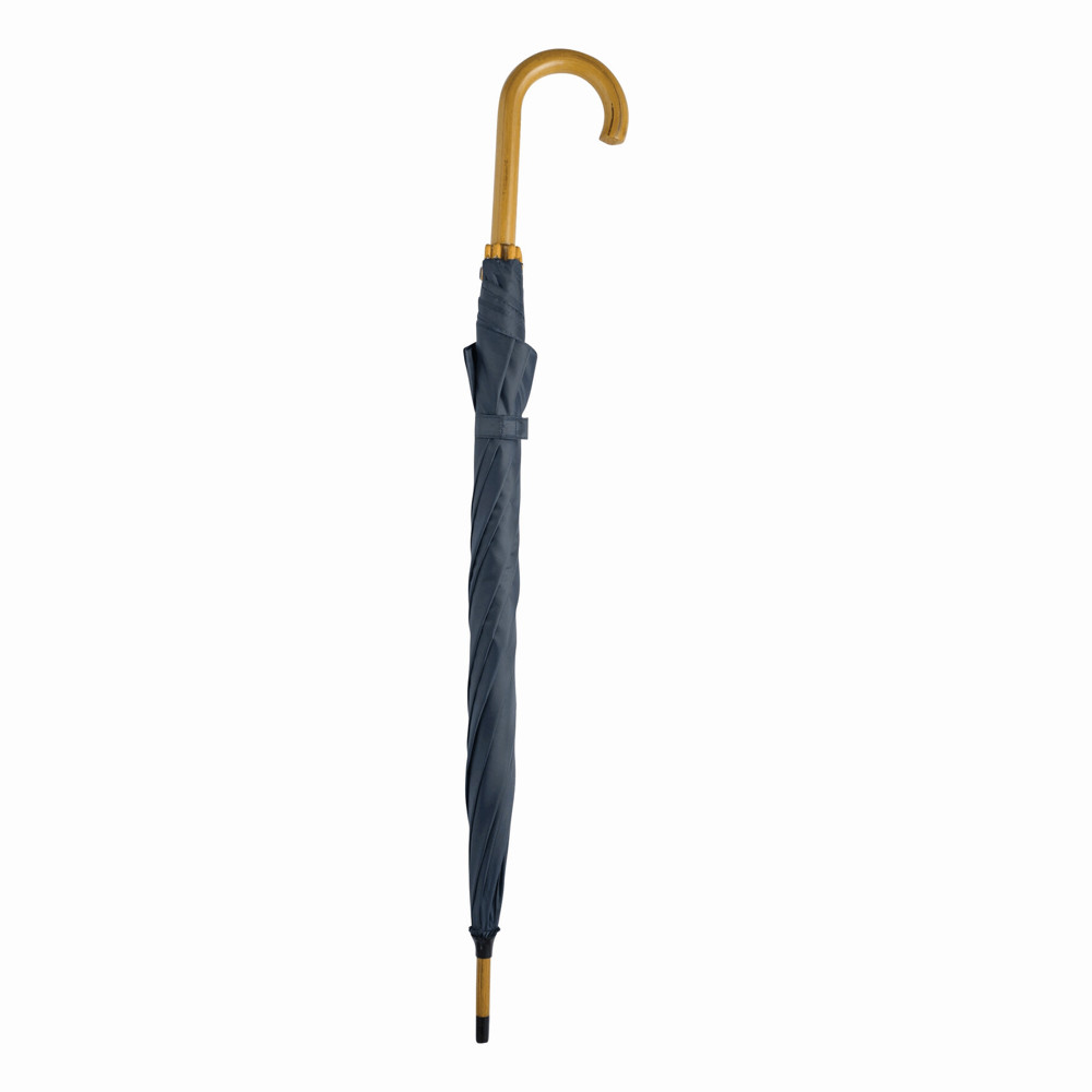 Automatik-Holzstockschirm TANGO: Metallspeichen, Holztips und -Rundhakengriff, Polyester-Bespannung, Schließband mit Klettverschluss
