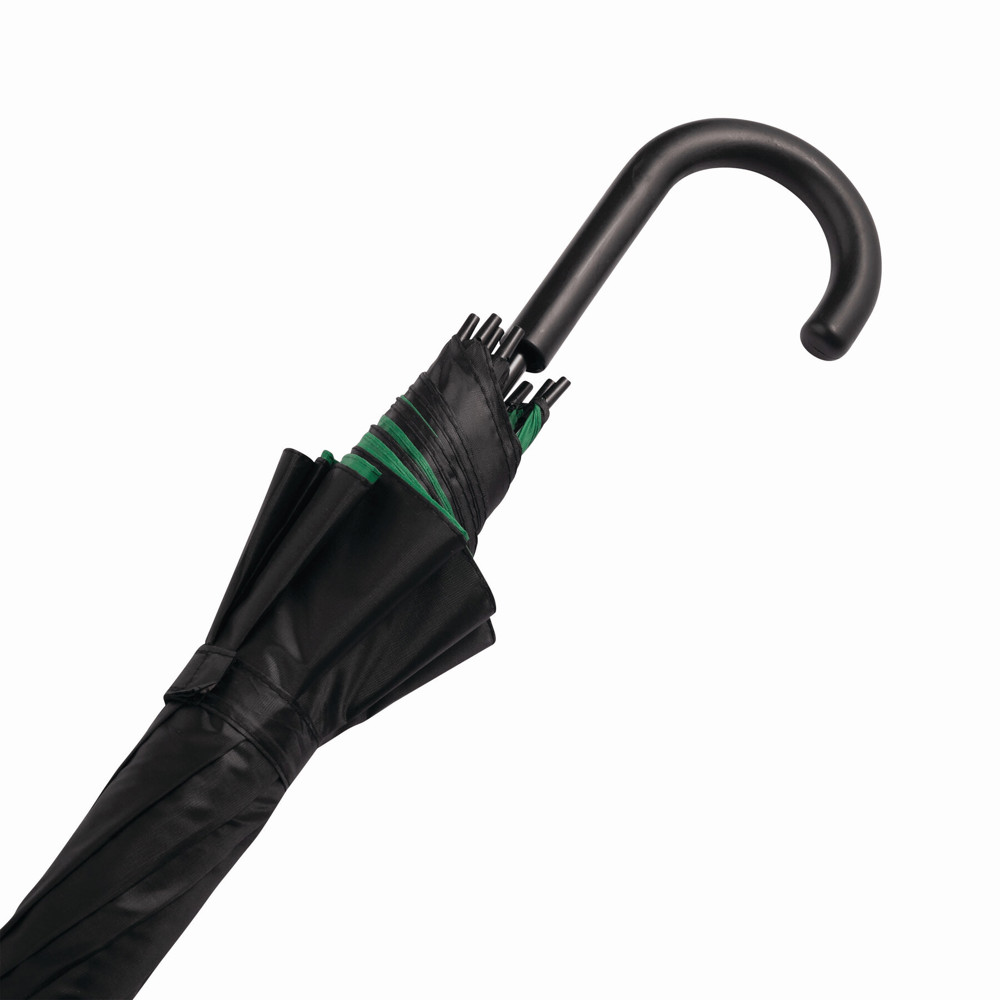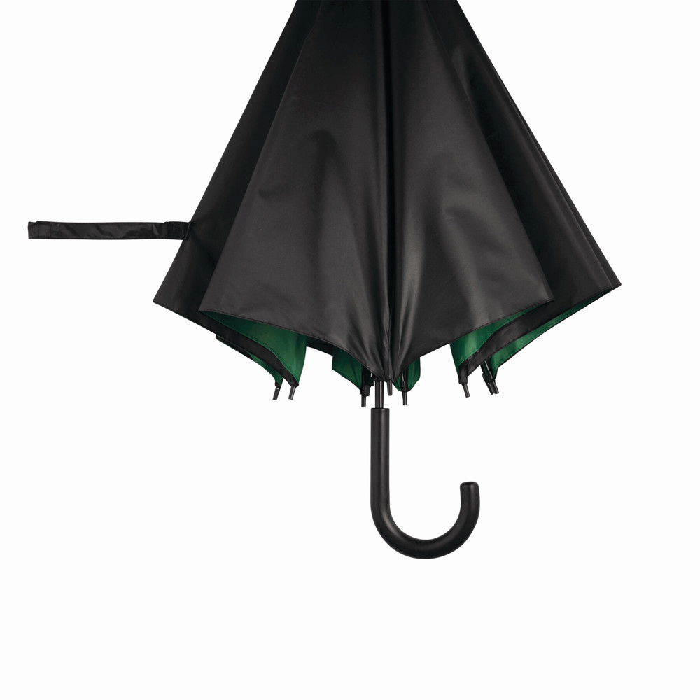 Automatik-Stockschirm DOUBLY: Metallstock und -speichen, Kunststofftips und -Rundhakengriff, doppelt bespanntes und zweifarbiges Schirmdach, Polyester-Bespannung, Schließband mit Klettverschluss