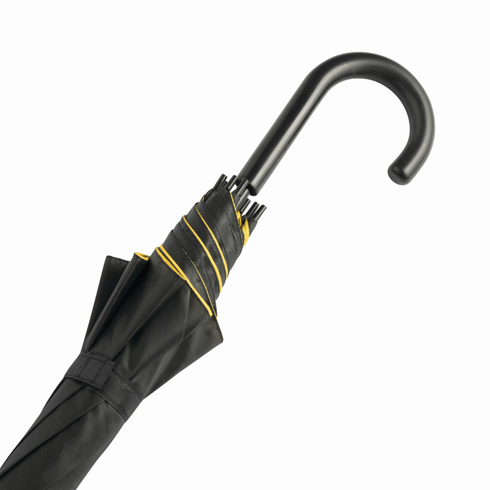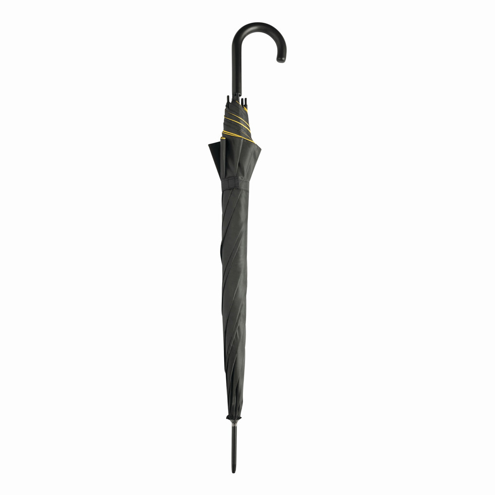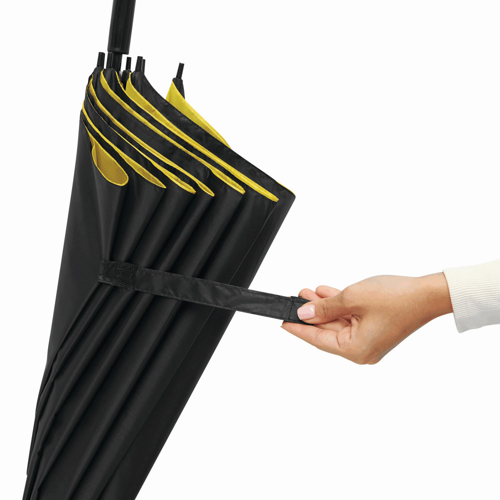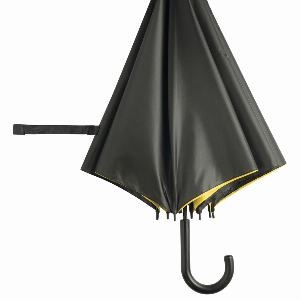 Automatik-Stockschirm DOUBLY: Metallstock und -speichen, Kunststofftips und -Rundhakengriff, doppelt bespanntes und zweifarbiges Schirmdach, Polyester-Bespannung, Schließband mit Klettverschluss