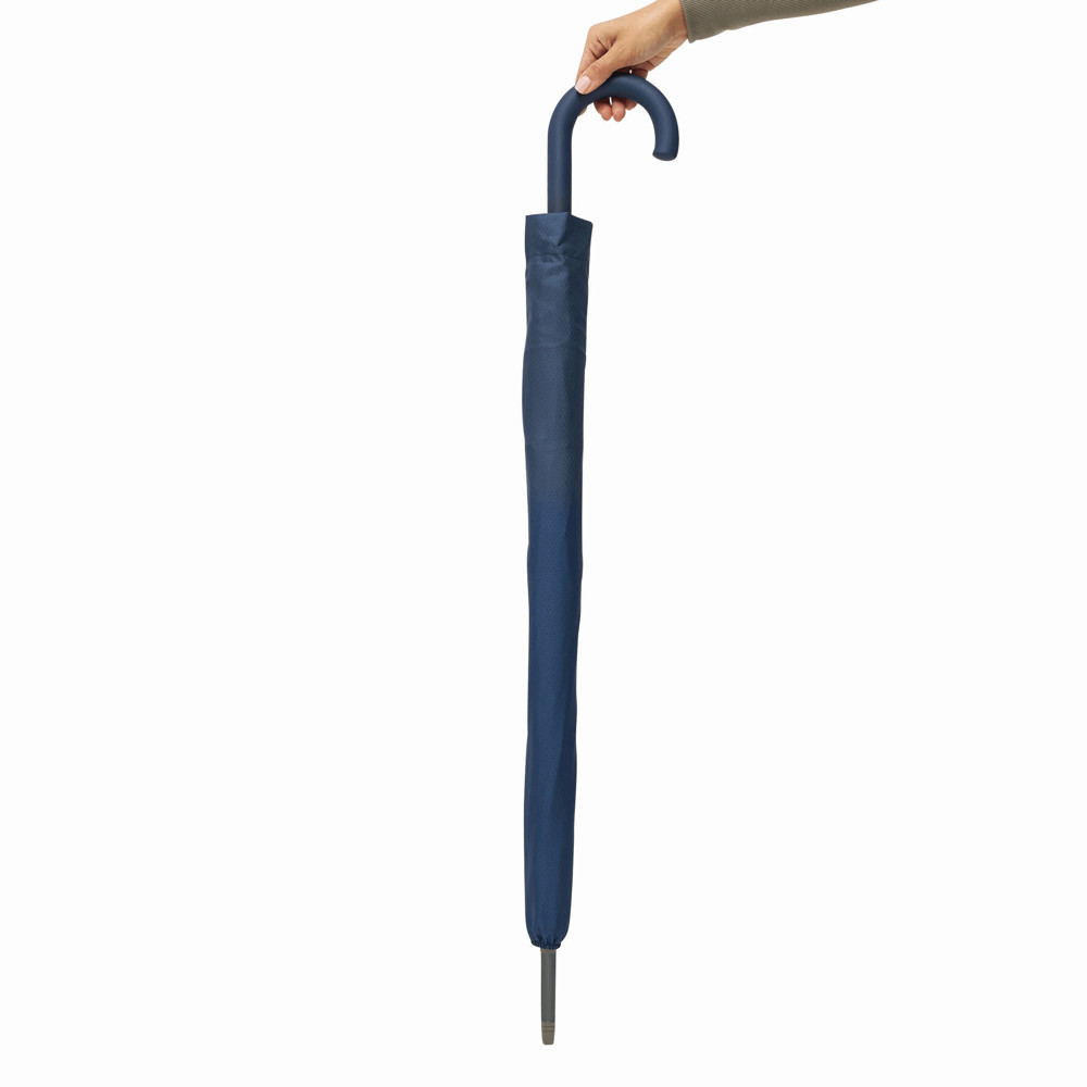 Automatischer Windproof-Stockschirm JUBILEE: Aluminiumstock, Fiberglasspeichen, Metalltips, gummierter und farblich abgestimmter Rundhakengriff, Polyester-Bespannung und -Hülle mit Wabenstruktur, Verschlussband mit Druckknopf und Metall-Platte zur Werbeanbringung