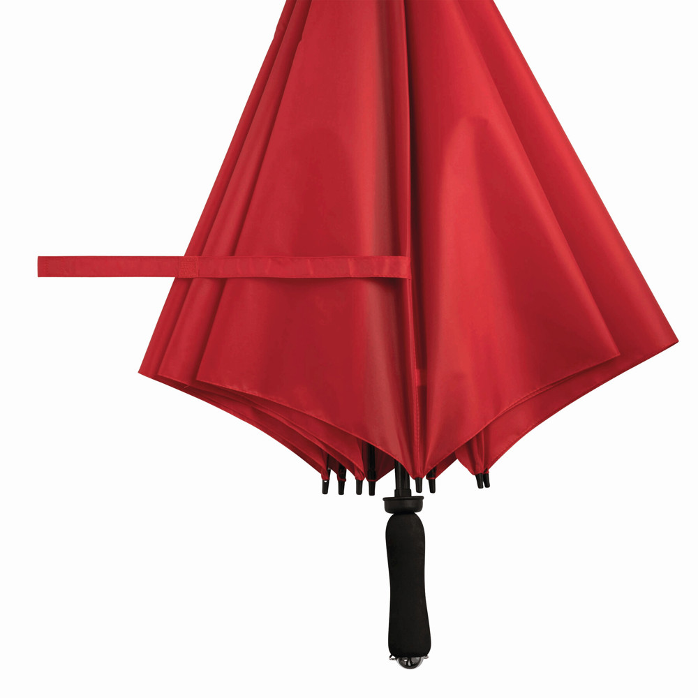 Golfschirm mit Tragefutteral MOBILE: Metallstock, Doppelmetallspeichen mit Polyester-Bespannung und Kunststofftips, Moosgummigriff, Schließband mit Klettverschluss
