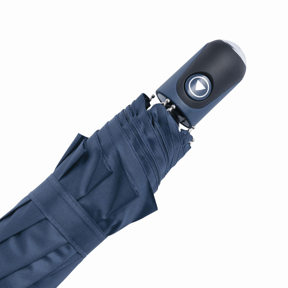 Automatik-Taschenschirm COVER: 3-teiliger Metallstock, Metallspeichen und -tips, gummierter Griff, Polyester-Pongee-Bespannung und -Hülle, Schließband mit Klettverschluss
