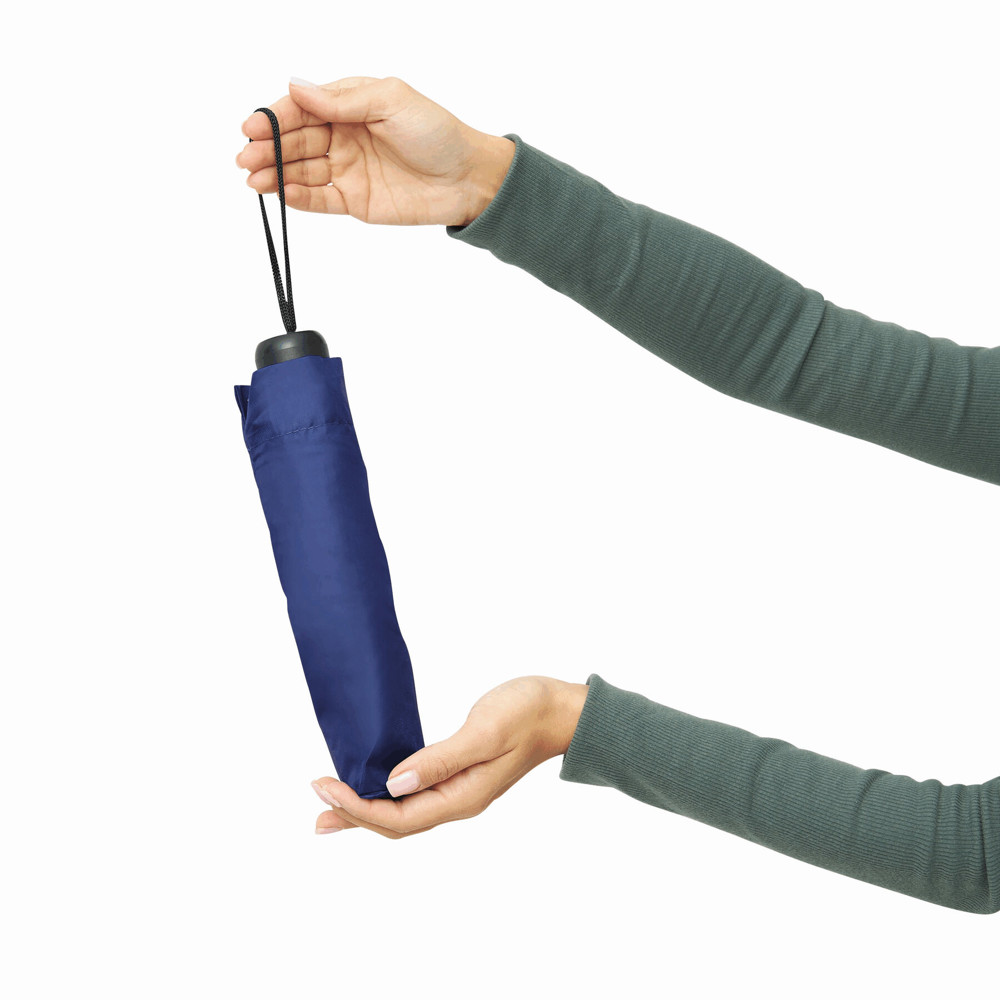 Taschenschirm PICOBELLO: 3-teiliger Metallstock, mit Metall- / Fiberglasspeichen, schwarzer Kunststoffgriff, Metalltips, Polyester-Bespannung, Schließband mit Klettverschluss