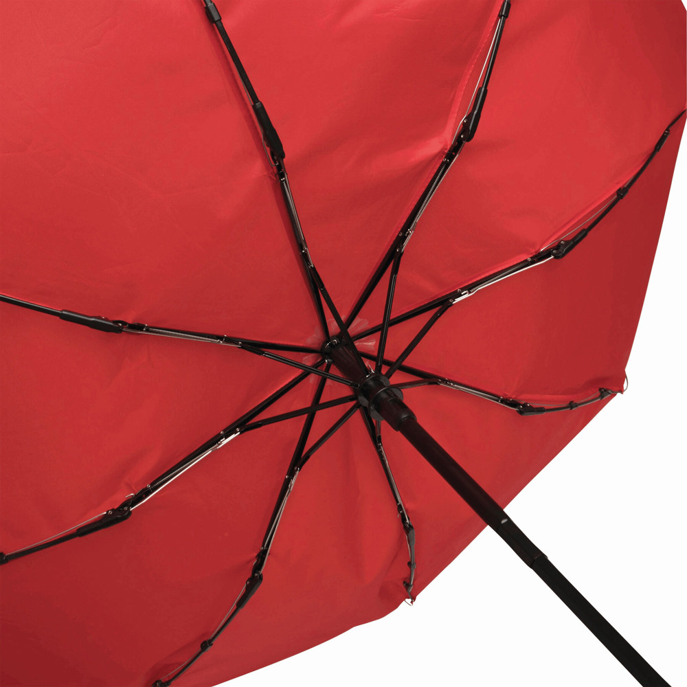 Vollautomatischer Windproof-Taschenschirm PLOPP in farblich abgestimmter Hülle: 3-teiliger Metallstock, mit Metall- / Fiberglasspeichen und Metalltips, gummierter Griff mit Handschlaufe, Polyester-Bespannung, Schließband mit Klettverschluss