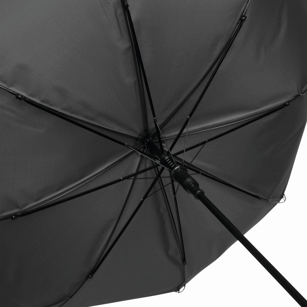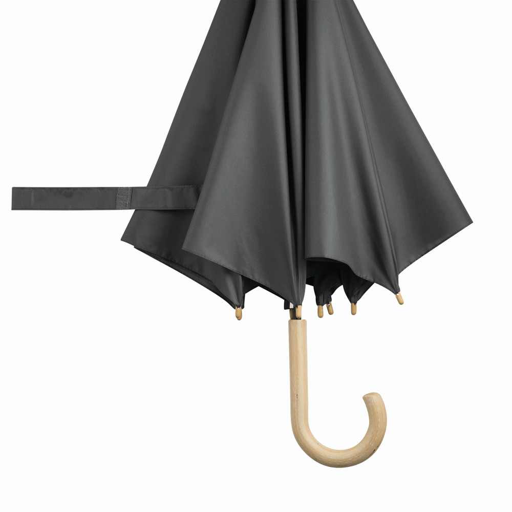 Automatik-Stockschirm LIPSI: Metallstock, Fiberglasspeichen, Holztips und -Rundhakengriff, Polyester-Pongee-Bespannung aus recycelten Kunststoffen / RPET, Schließband mit Klettverschluss