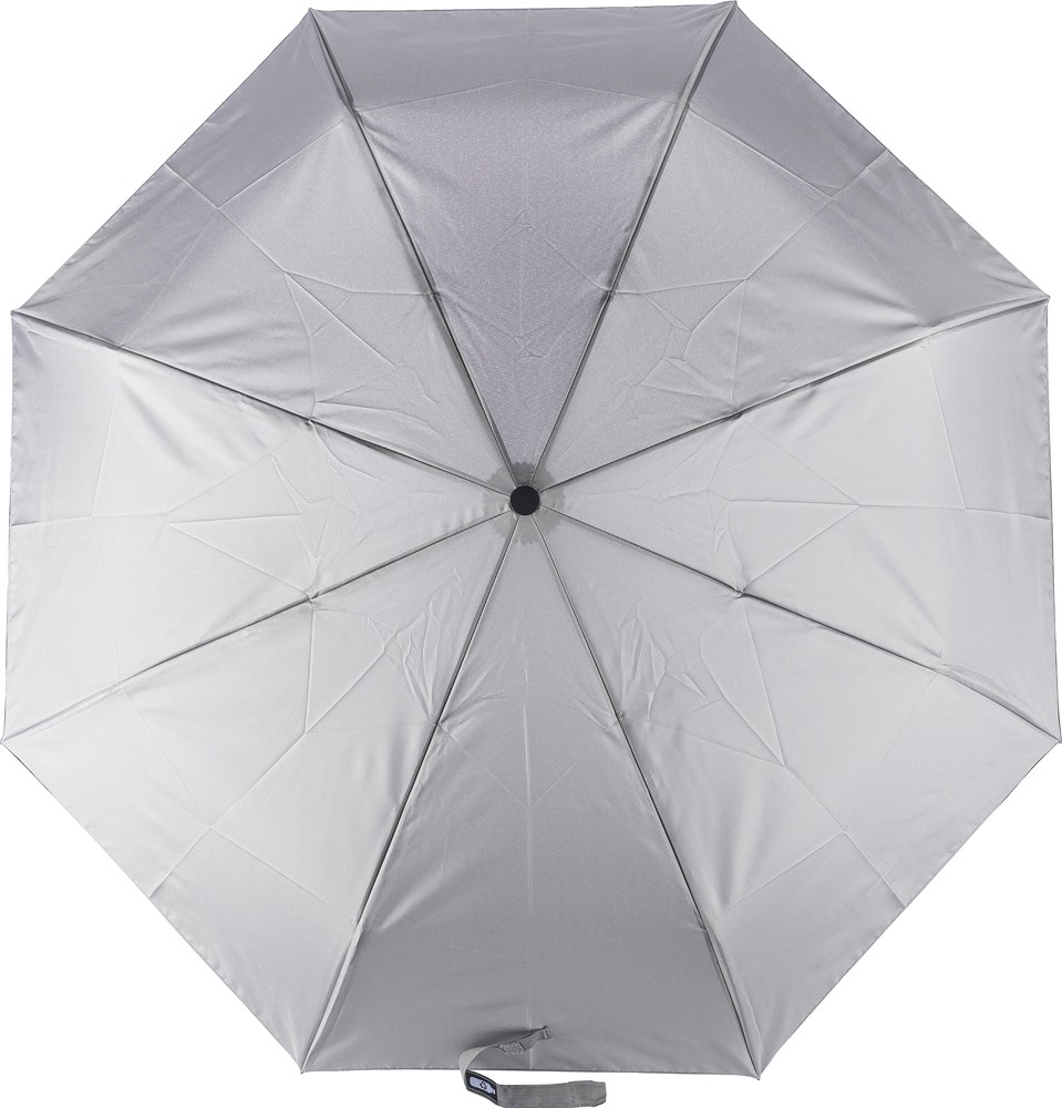 rPET 190T, faltbarer Automatikschirm mit acht Paneelen. Druckknopf zum Öffnen und Schließen.