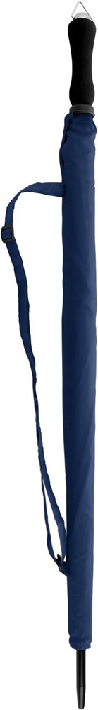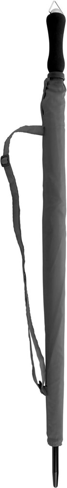 Portierschirm aus Polyester (210T), mit Handöffner, Schaft, Gestell und Spitze aus Metall, Kunststofftips, Klettverschluss, Griff aus EVA-Schaum und Hülle.