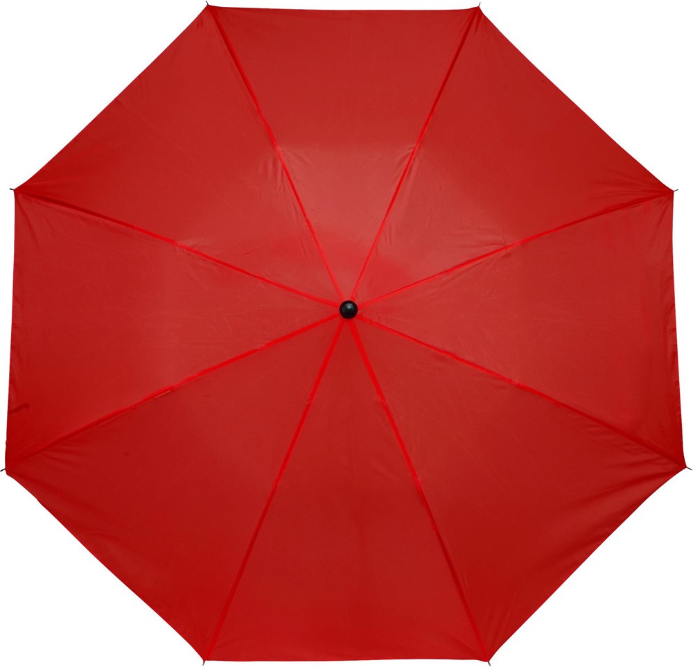 Taschenschirm aus Polyester (190T), mit Kunststoff-Griff, Schaft, Tips und Gestell, Spitze aus Metall. Der Taschenschirm wird mit einer passenden Hülle geliefert.
