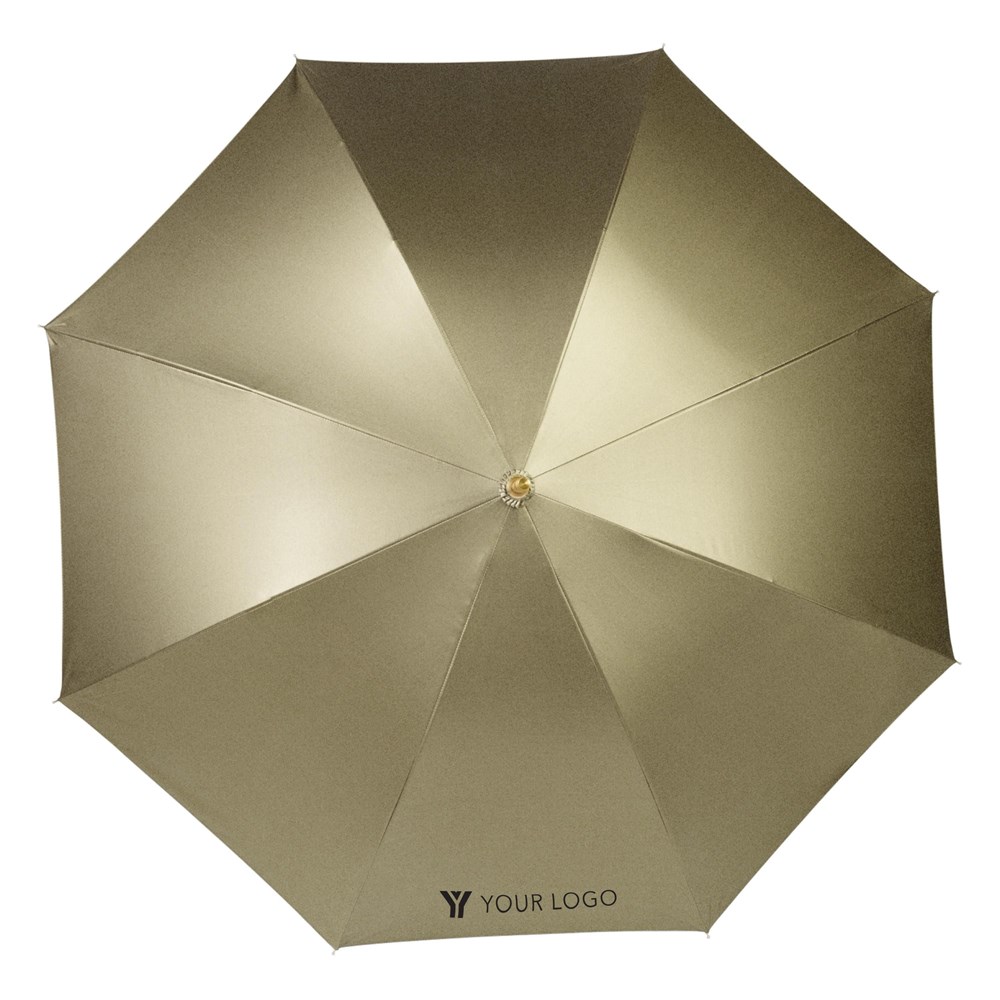 Automatik-Stockschirm aus Pongee-Seide, mit Schaft, Spitze und Krücke aus Aluminium, Gestell und Tips aus Metall.