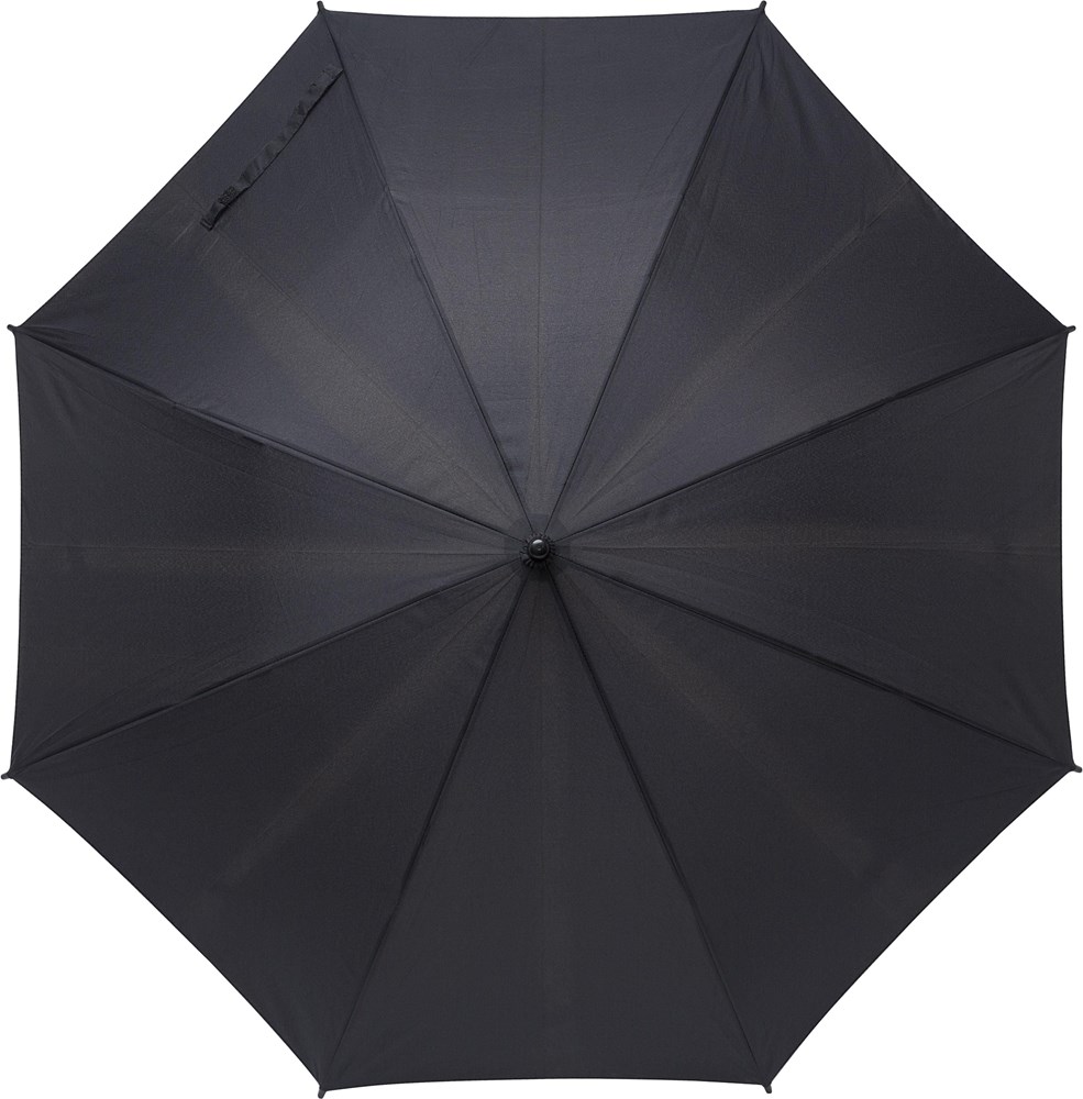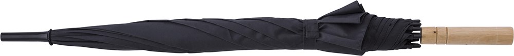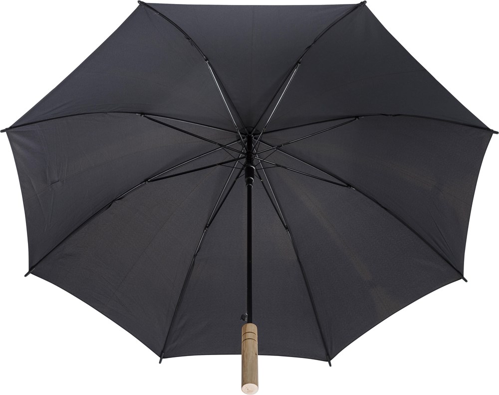 Automatik-Regenschirm mit einer Bespannung aus rPET-Pongee (190T), einem Handgriff aus Bambus und ein Gestell aus Metall.