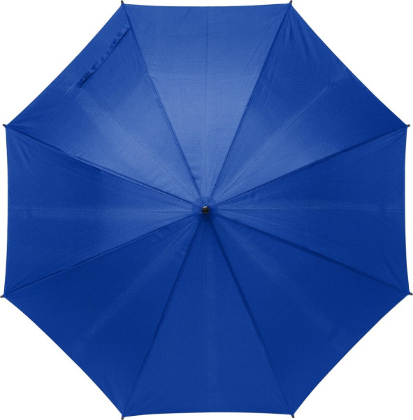 Automatik-Regenschirm mit einer Bespannung aus rPET-Pongee (190T), einem Handgriff aus Bambus und ein Gestell aus Metall.