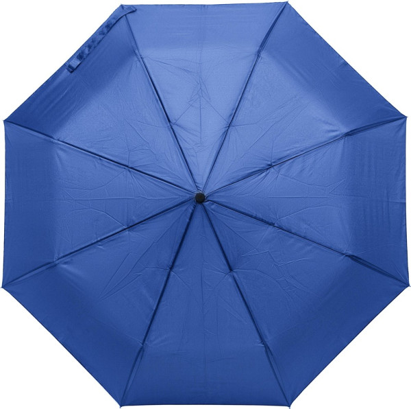 Faltbarer Automatik-Taschenschirm mit einer Bespannung aus Pongee (180T). Der Schaft und das Gestell sind aus Metall und der Handgriff ist aus Kunststoff.