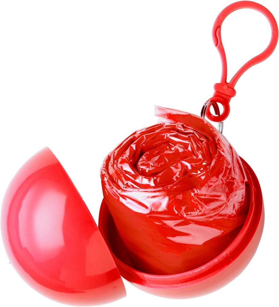 Poncho transparent, verpackt in ABS-Kunststoff-Kugel mit Kunststoff-Karabinerhaken. mehr
