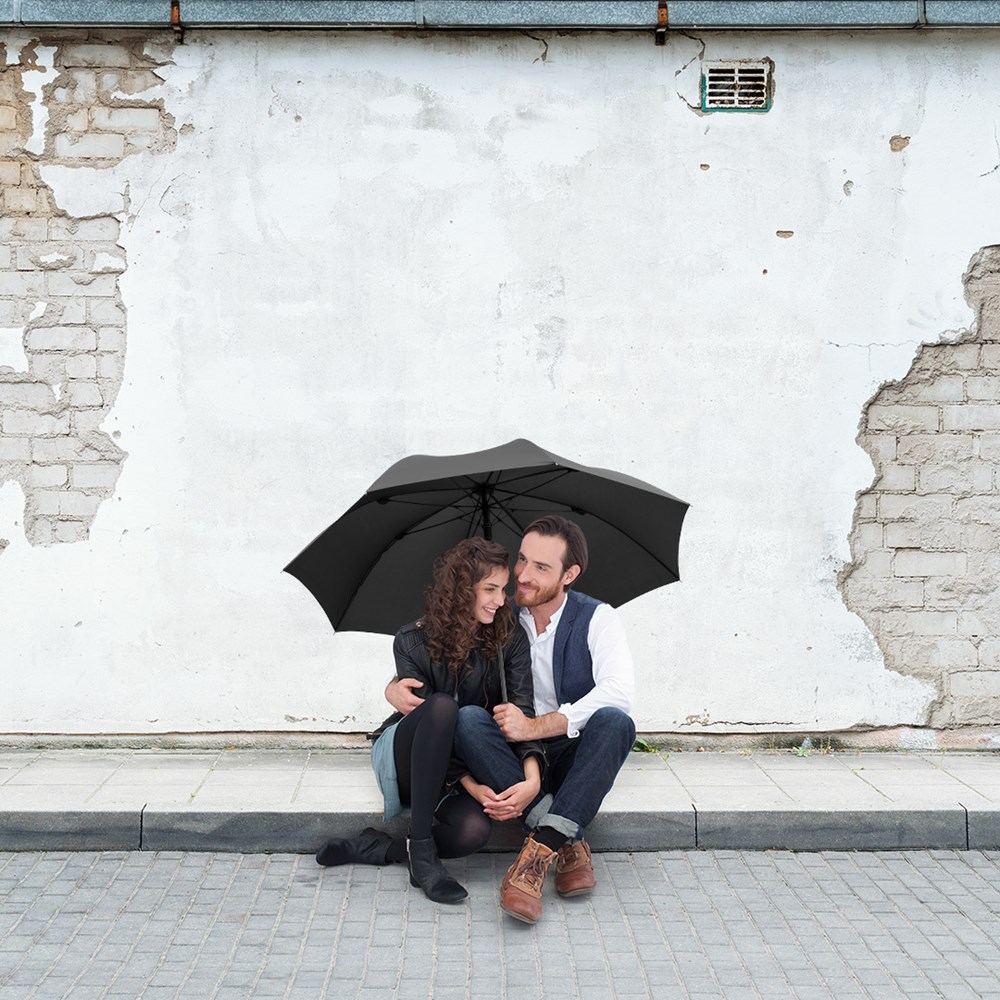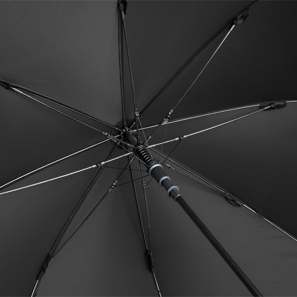Preislich attraktiver Automatik-Gästeschirm mit Windproof-PLUS-System Komfortable Automatik-Funktion zum schnellen Öffnen, hochwertiges Windproof-PLUS-System für eine maximale Gestell-Flexibilität bei stärkeren Windböen, flexible Fiberglasschienen, höherer Korrosionsschutz durch schwarze Galvanisierung des Stahlstocks, handsympathischer Soft-Feel-Griff mit integrierter Auslösetaste und Werbeanbringungsmöglichkeit