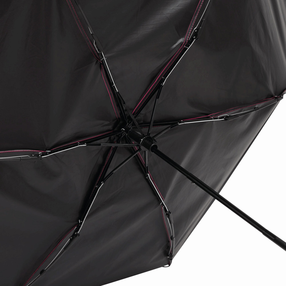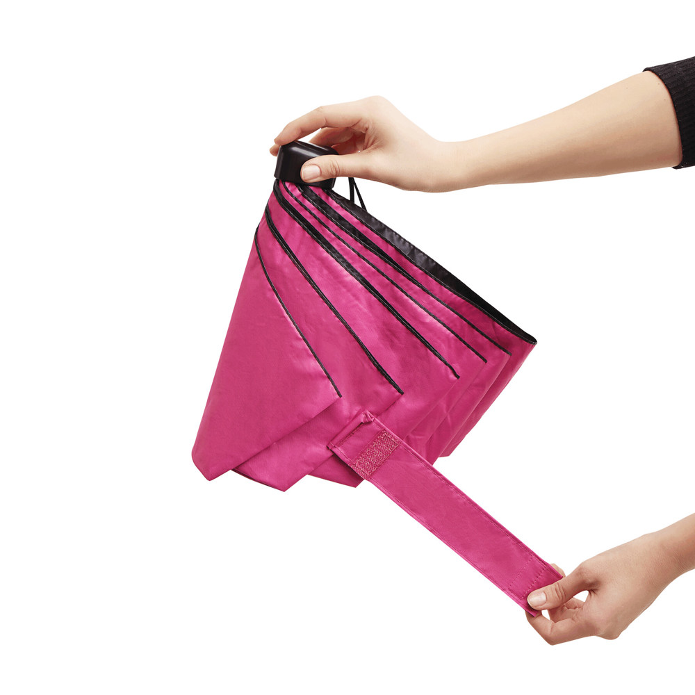 Taschenschirm SUNDANCE, mit UV-Schutz, in farblich abgestimmter Hülle: 3-teiliger Metallstock, Metall-/Fiberglasspeichen, schwarzer Kunststoffgriff mit Handschlaufe, Polyester-Pongee-Bespannung UV50+, innen schwarz beschichtet, breites Schließband mit Klettverschluss