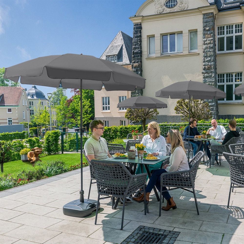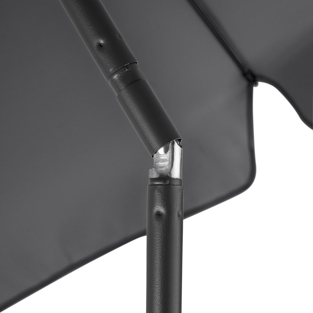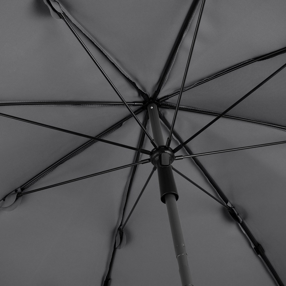 Moderner Sonnenschirm mit Gestell in Titan-Finish, Knickvorrichtung und mit Volant Einfache Handhabung durch Sicherheitsschieber, sehr stabile Fiberglasschienen, zweiteiliger und stufenlos höhenverstellbarer Stock mit Knickvorrichtung zur Neigung des Schirms, Stock in edlem Titan-Finish, Unterstock mit ca. 120 cm Länge und Drehfeststeller zur sicheren Fixierung, komfortables Tragefutteral, Bezug mit Lichtschutzfaktor UPF 50+, angeschnittenes Volant, exklusive Füllständer (Art. 8920 oder Art. 8905) / Erdspieß (Art. 8939)