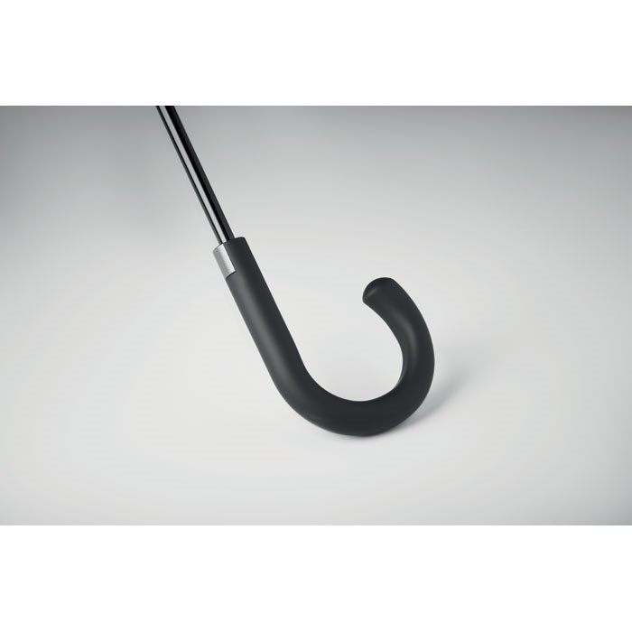 23'''' Regenschirm aus 190T Pongee. Windbeständig. Karierte Innenseite. Stangen aus Fiberglas, schwarz beschichteter Stock und Spitzen aus Kunststoff. Gebogener, gummierter Griff. Automatische Öffnung, manuelle Schließung.