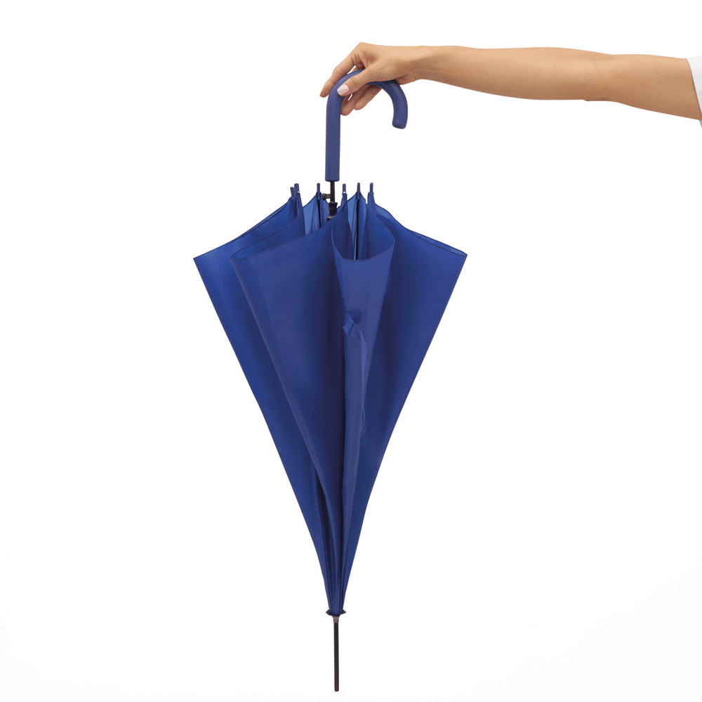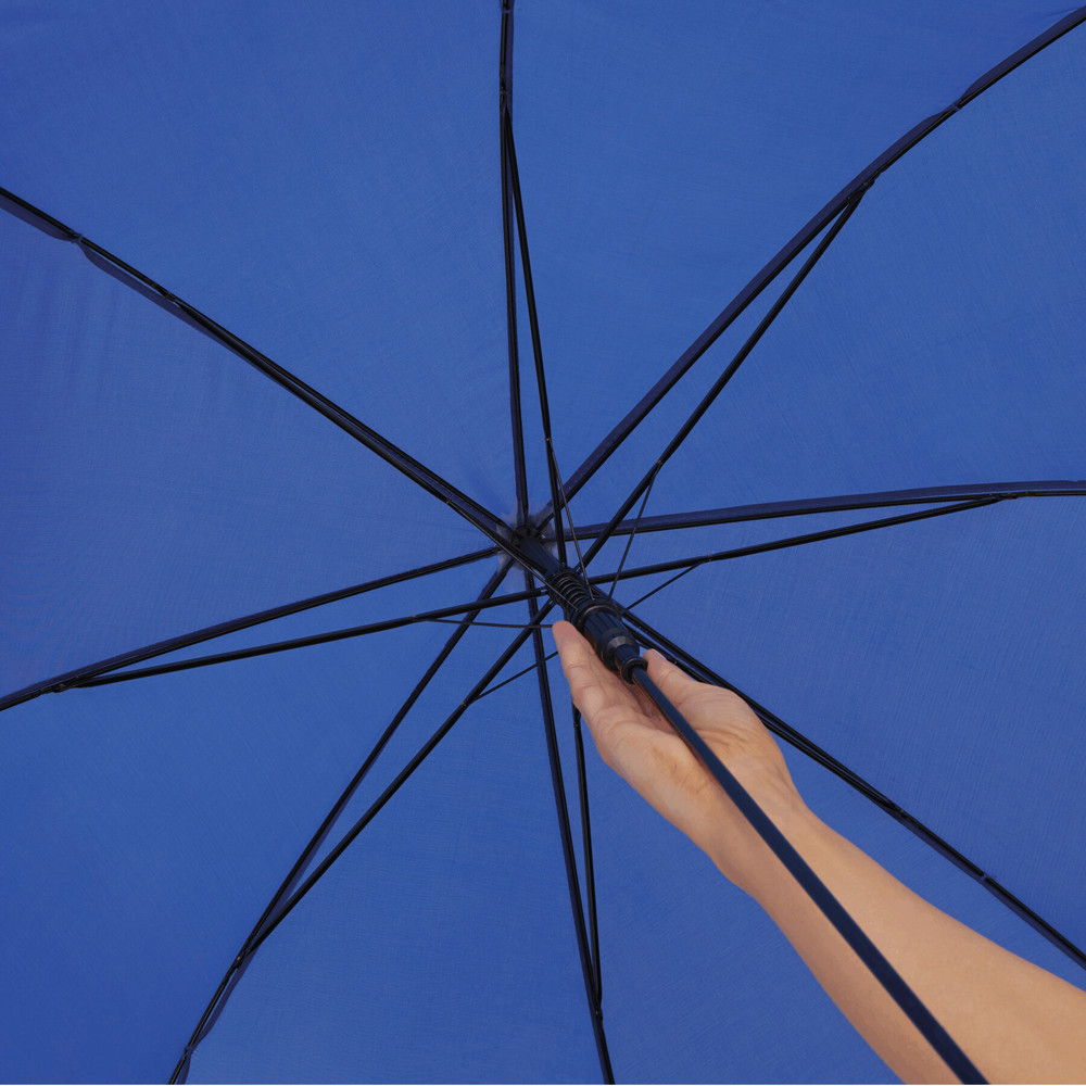 Automatischer Stockschirm DANCE: Metallstock und -speichen, Kunststofftips und -Rundhakengriff, Polyester-Bespannung, Schließband mit Klettverschluss