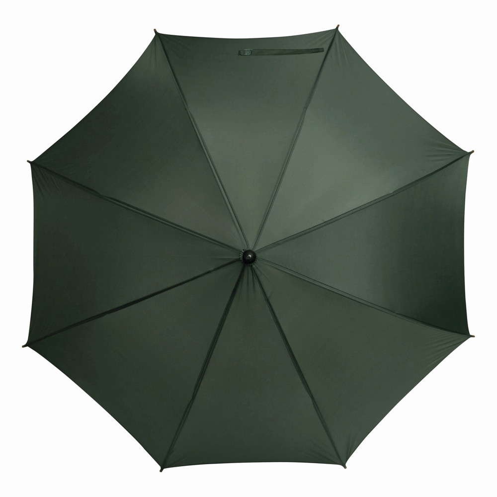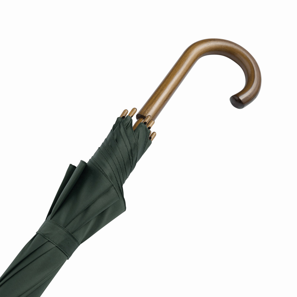 Automatik-Holzstockschirm BOOGIE: Metallspeichen, Holztips und -Rundhakengriff, Nylon-Bespannung, Schließband mit Klettverschluss