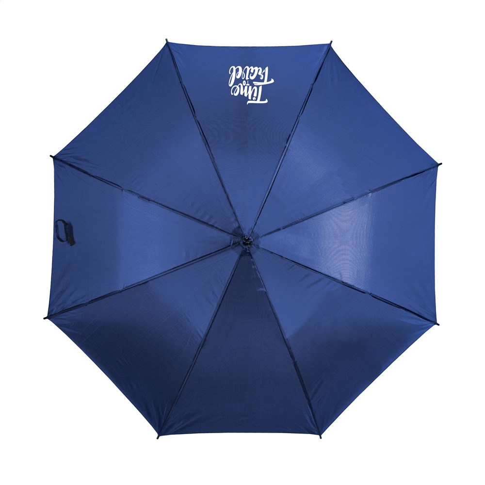 Regenschirm mit automatischer Teleskopöffnung. 190T Polyester-Bespannung, Fiberglasrahmen, Metallschaft, Klettverschluss, gebogenem, klassischem Handgriff, der durch die luxuriöse Gummiummantelung gut in der Hand liegt.