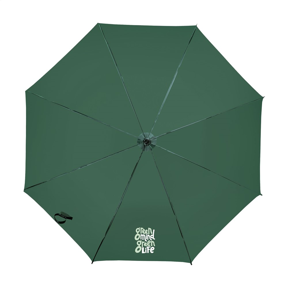 Regenschirm mit automatischer Teleskopöffnung, 190T Polyester-Bespannung, Fiberglasrahmen, Metallschaft, Softgriff und Klettverschluss.