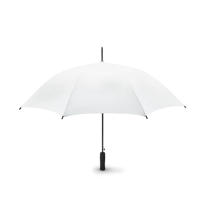 23'' Regenschirm aus 190T Pongee. Stock und Schienen aus schwarz überzogenem Metall, Spitzen aus schwarzem Kunststoff. Schwarzer EVA Griff. Automatische Öffnung, manuelle Schließung.