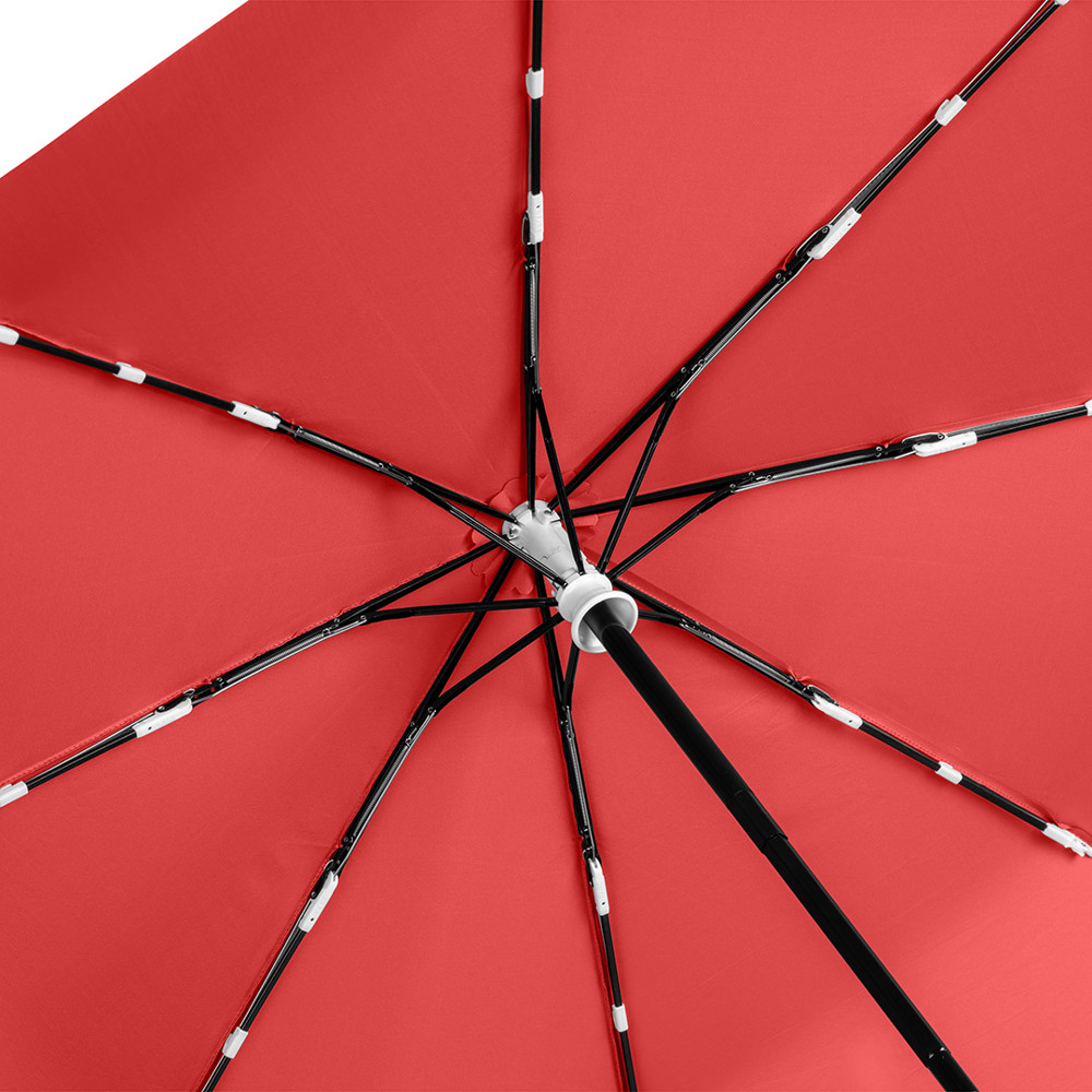 Stylischer Doppelautomatik-Taschenschirm mit weißen Design-Elementen Komfortable Doppelautomatik-Funktion zum schnellen Öffnen und Schließen, hochwertiges Windproof-PLUS-System für eine maximale Gestell-Flexibilität bei stärkeren Windböen, flexible Fiberglasschienen mit weißen Design-Elementen, stabiler Stahlstock, Polyester-Pongee Bezugsmaterial aus recycelten Kunststoffen, formschöner Soft-Feel-Griff mit Trageschlaufe in Bezugsfarbe und weißen Design-Elementen mit integrierter Auslösetaste und Werbeanbringungsmöglichkeit