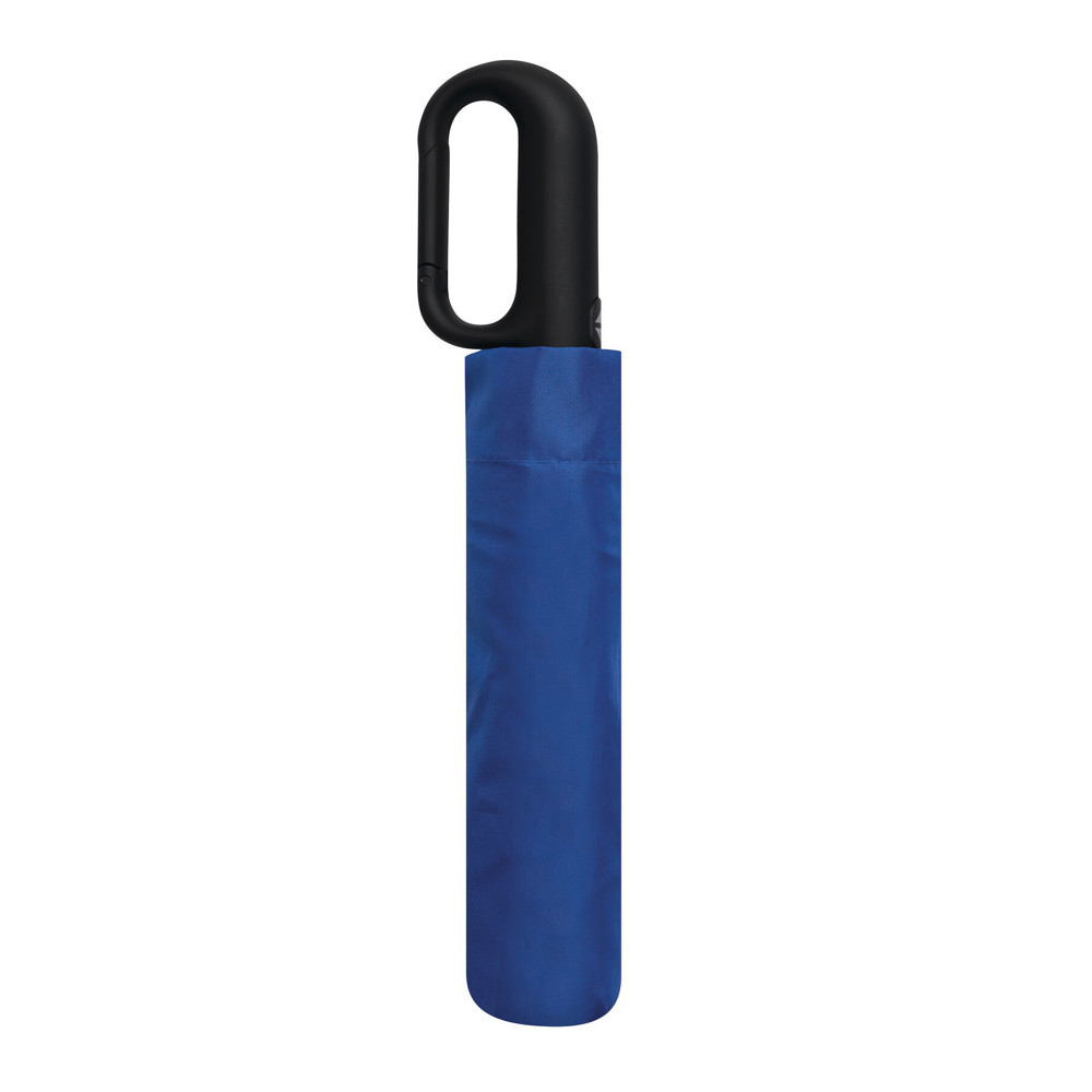 Vollautomatischer Windproof-Taschenschirm SCIROCCO in farblich abgestimmtem Futteral: 3-teiliger Metallstock, mit Metall-Fiberglasspeichen und Metalltips, schwarzer gummierter Karabiner-Kunststoffgriff, Polyester-Pongee-Bespannung aus recycelten Kunststoffen / RPET, Schließband mit Klettverschluss