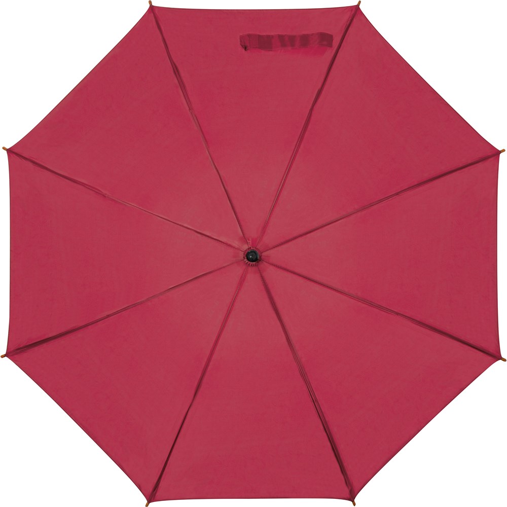 Der Klassiker, Automatikregenschirm mit 190T Polyesterbespannung, Echtholzschaft u. -griff sowie einem Metallgestänge mit Hochleistungsautomatikfeder. Ihre Werbung drucken wir auf ein Segment.