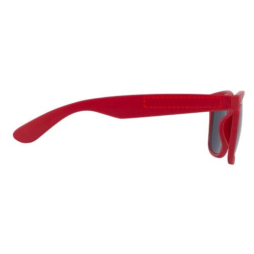 Diese nachhaltige Sonnenbrille im Retro-Design ist der ideale Werbeartikel für Sommerfestivals, Veranstaltungen oder andere sonnige Aktivitäten im Freien. Die Sonnenbrille ist leicht und angenehm zu tragen und aus recyceltem Kunststoff hergestellt, und somit eine nachhaltige Wahl. Sie entspricht der Norm EN ISO 12312-1 und verfügt über UV400-Gläser der Kategorie 3, wodurch sie die perfekte Wahl für den Schutz vor hellem Sonnenlicht ist.