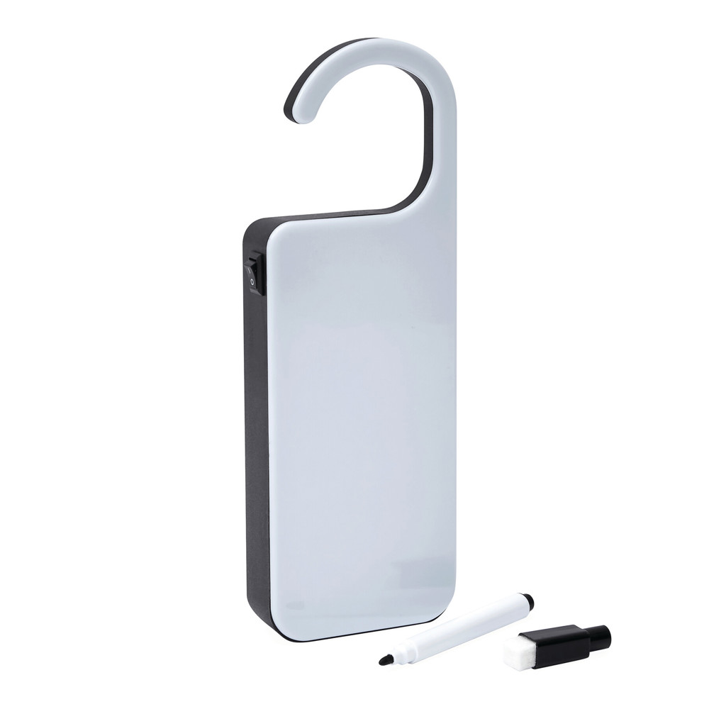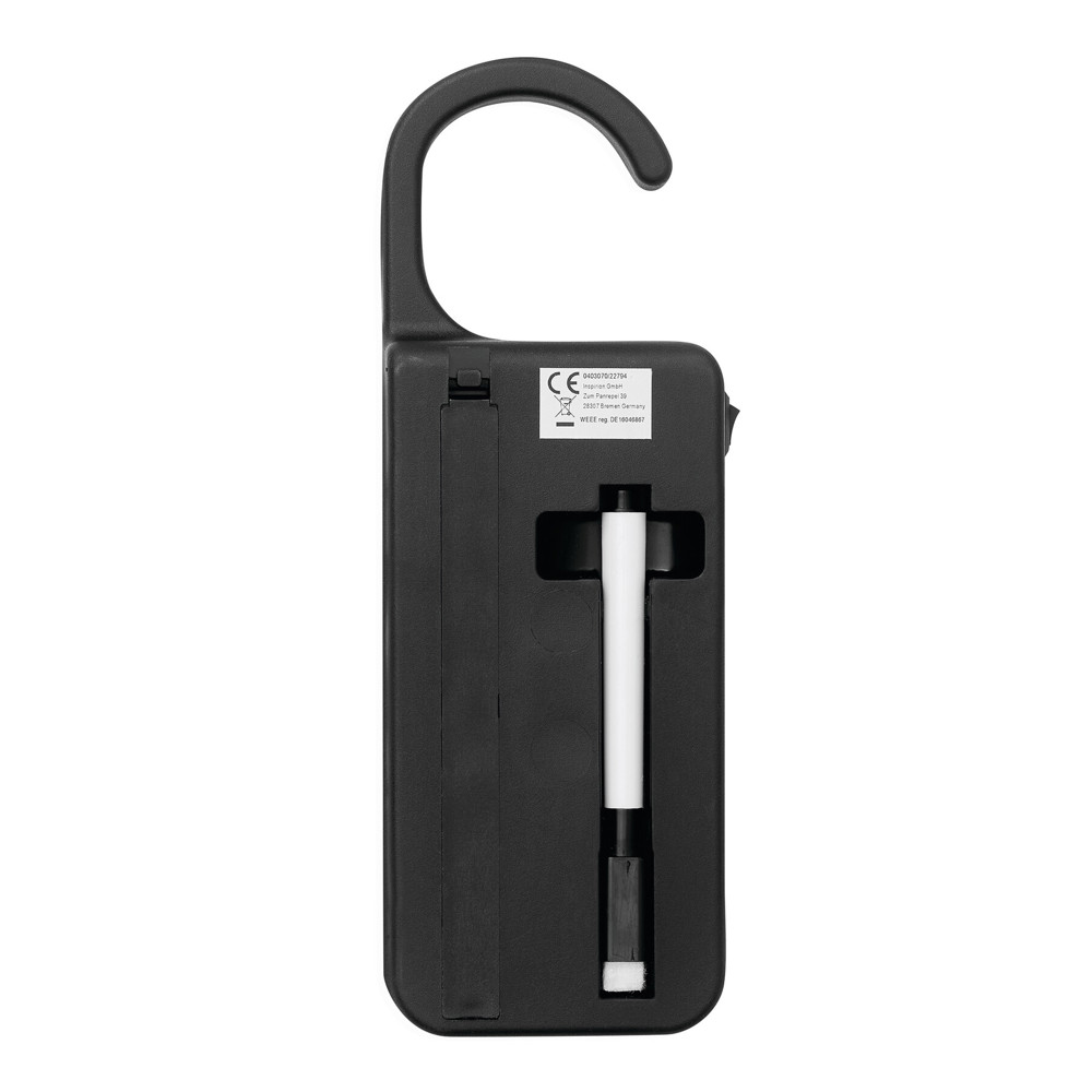 LED-Türhänger DO NOT DISTURB: mit umlaufendem LED-Band innen, Ein- und Ausschalter an der Seite, mit non-permanent Marker und Radierfilz zur Beschriftung des Türhängers, batteriebetrieben (3xAAA Batterien nicht enthalten), in Box