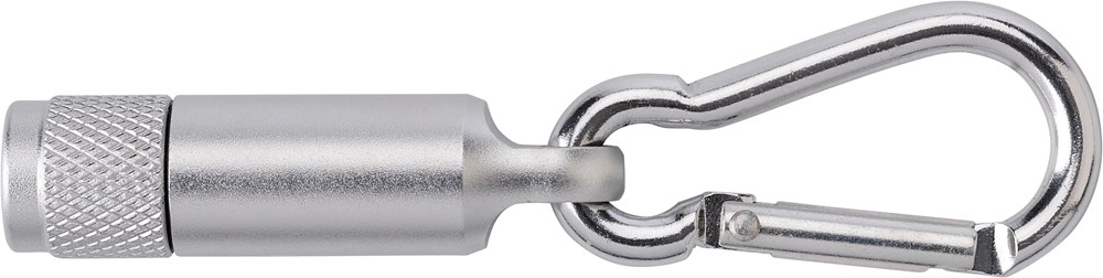 Mini-Taschenlampe aus Aluminium mit einem LED-Licht und Karabiner als Schlüsselbund. mehr