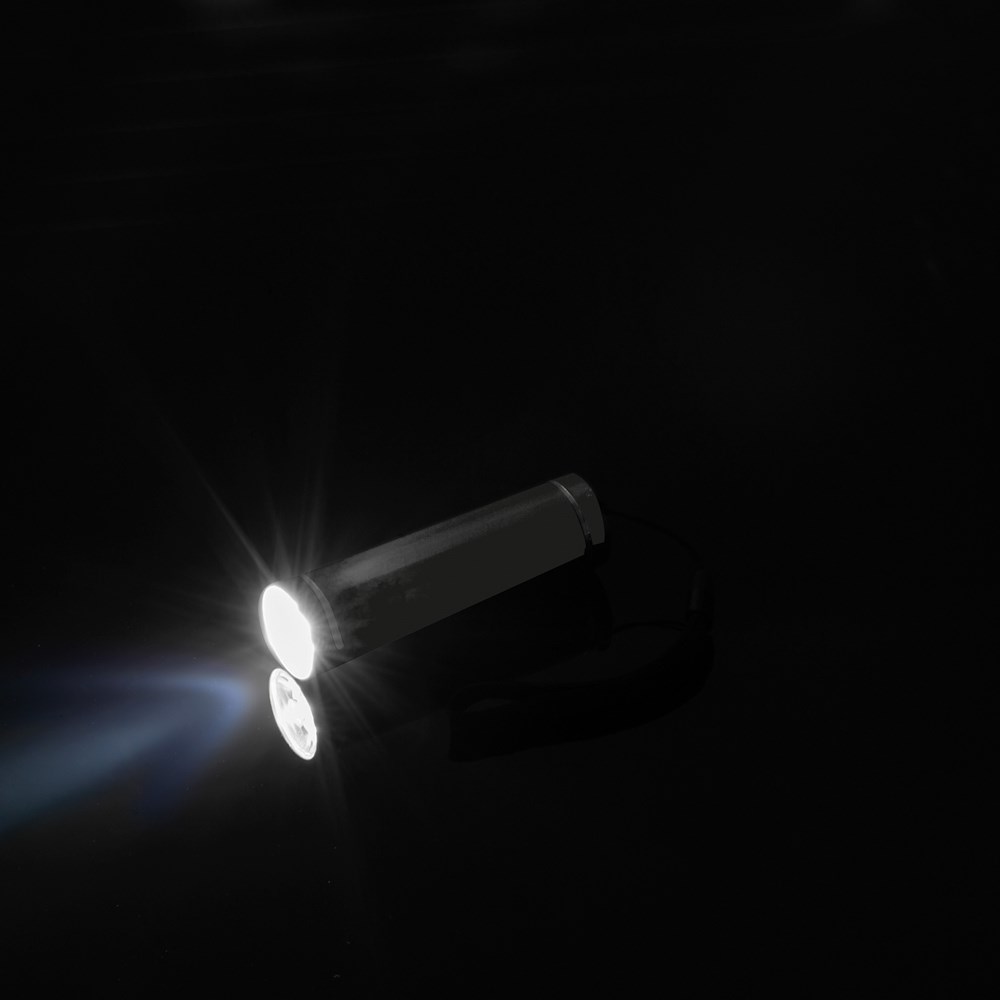 COB-Taschenlampe aus recyceltem Aluminium, 100 Lumen. Umweltfreundlich und leistungsstark für zuverlässige Beleuchtung. Ihre Werbung gravieren wir auf die Taschenlampe. Exklusive 3 AAA Batterien, bestellen Sie diese gleich mit (Art. 999400).