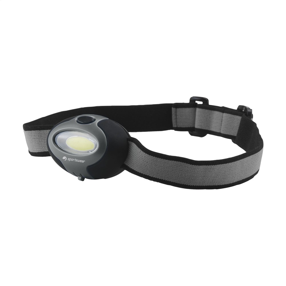 ABS Kopflampe mit COB LED. Strahlt in enorm hellen, weißen Licht. An einem elastischen Kopfband. Extrem praktisch für Aktivitäten im Freien. Inkl. Knopfzellen. Wird einzeln in einem Kraftkarton geliefert.