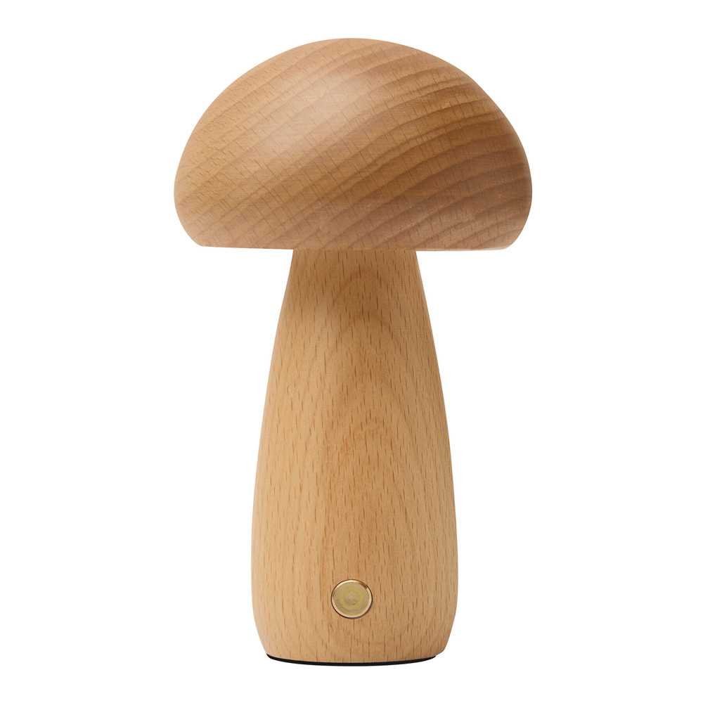 LED-Tischlampe MOSSLIGHT: aus Holz, in Pilzform, An und Aus per Fingertipp und zum Dimmen, leistungsstarker Lithium-Akku, Kapazität: 900 mAh, inkl. USB-Ladekabel mit USB Typ C Stecker (Länge ca. 1 m), rutschhemmende Beschichtung am Boden, in Box